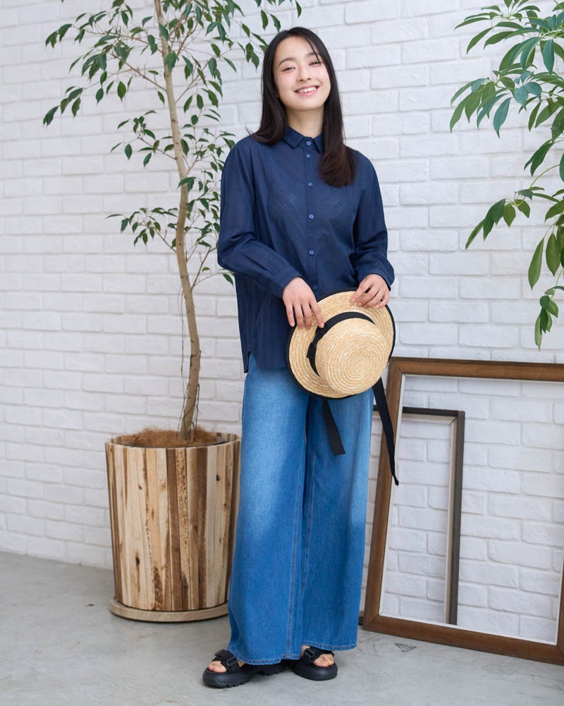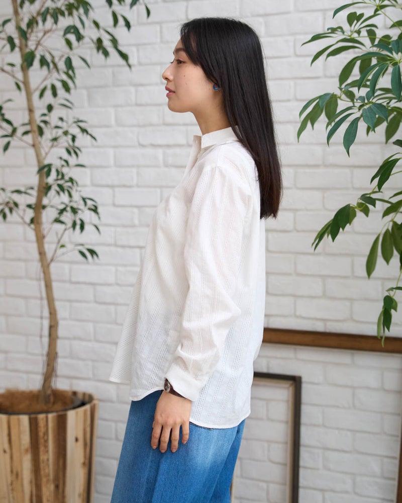 異なる織り地を組み合わせることで、表情豊かに仕上げた切替ブラウス。デザインに変化をつけることで、一枚で着ても単調にならず、洗練された印象を与えてくれます。綿麻素材のサラッとした肌触りにこだわりました。シンプルながらも「自分らしさ」を大切にしたい日のコーディネートに、そっと彩りを添えてくれます。
