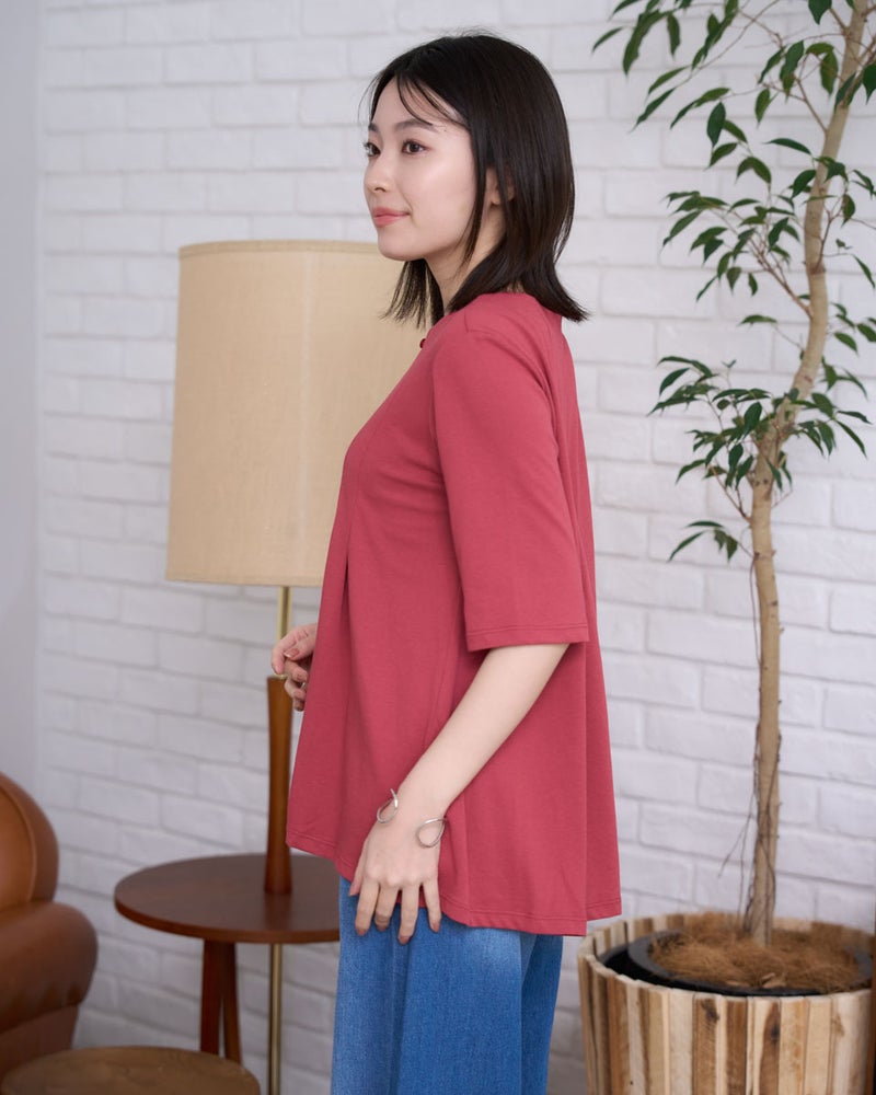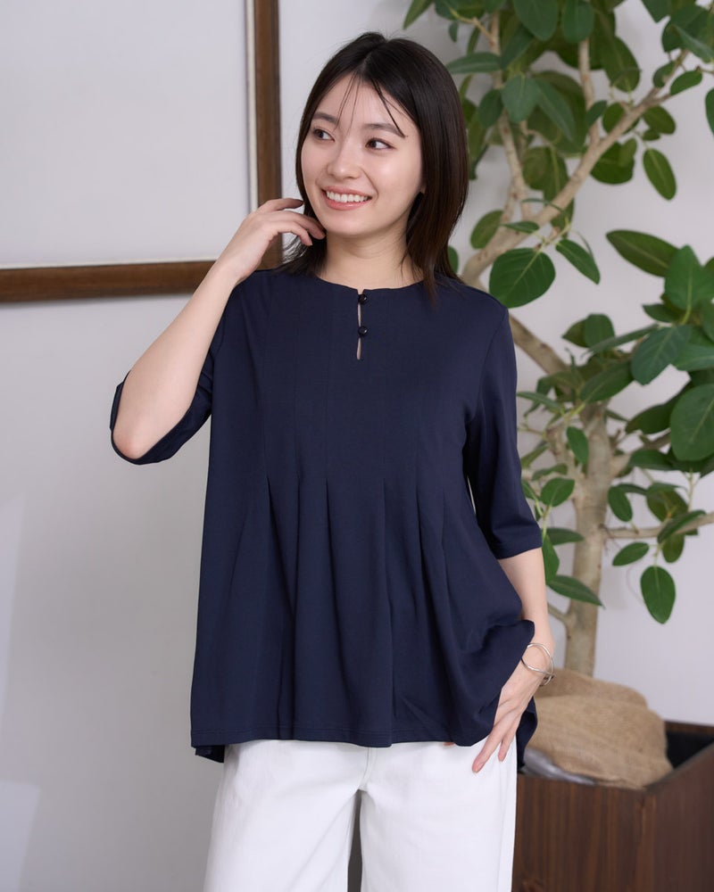 フロントに施したタックデザインが、シンプルながらも華やかな印象を与えるカットソー。立体感のあるシルエットが自然なドレープを生み出し、気になるボディラインをさりげなくカバーします。やわらかな肌触りで着心地も快適。オンにもオフにも着回しやすく、パンツにもスカートにも合わせやすい万能トップスです。 モデル身長: 162 cm 着用サイズ: M サイズ Golden Bear WOMEN カットソー (WOMEN) 同デザイン大きい(3L,4Lサイズ)はこちら 【着用アイテム】468U4750 ワイドデニムパンツ 468U4751 ワイドデニムパンツ