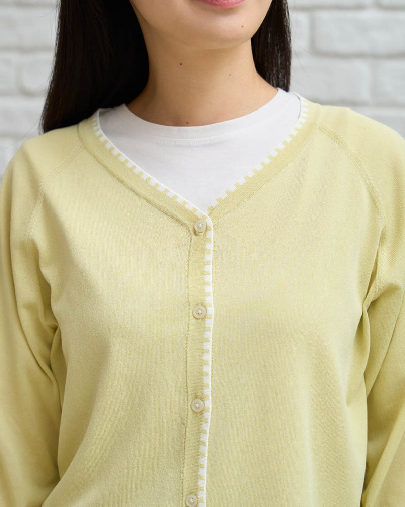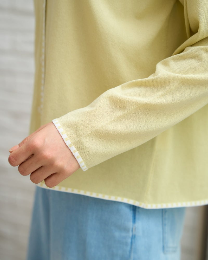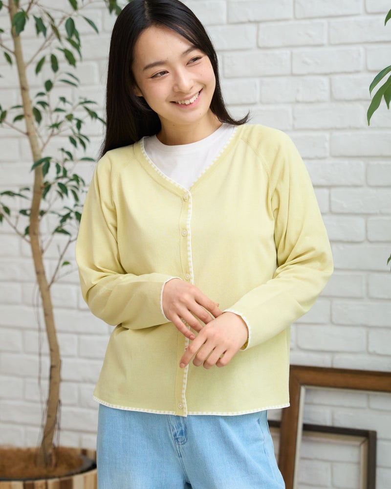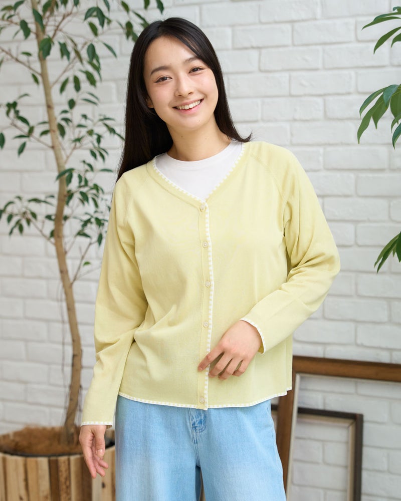 強い日差しから肌を守るUVカット機能付き。サラッとした爽やかな肌触りで、夏まで心地よく寄り添ってくれます。前立てや袖口に施した繊細なドビー編みが、シンプルな中に大人の個性を添えてくれます。計算されたVネックは、ボタンを留めても開けても美しく決まる設計。日よけや冷房対策として、毎日のお出かけに欠かせない一着です。 モデル身長: 167 cm 着用サイズ: M サイズ Golden Bear WOMEN ニット (WOMEN) 【着用アイテム】467U4315 綿麻切替シャツ 468U4750 ワイドデニムパンツ