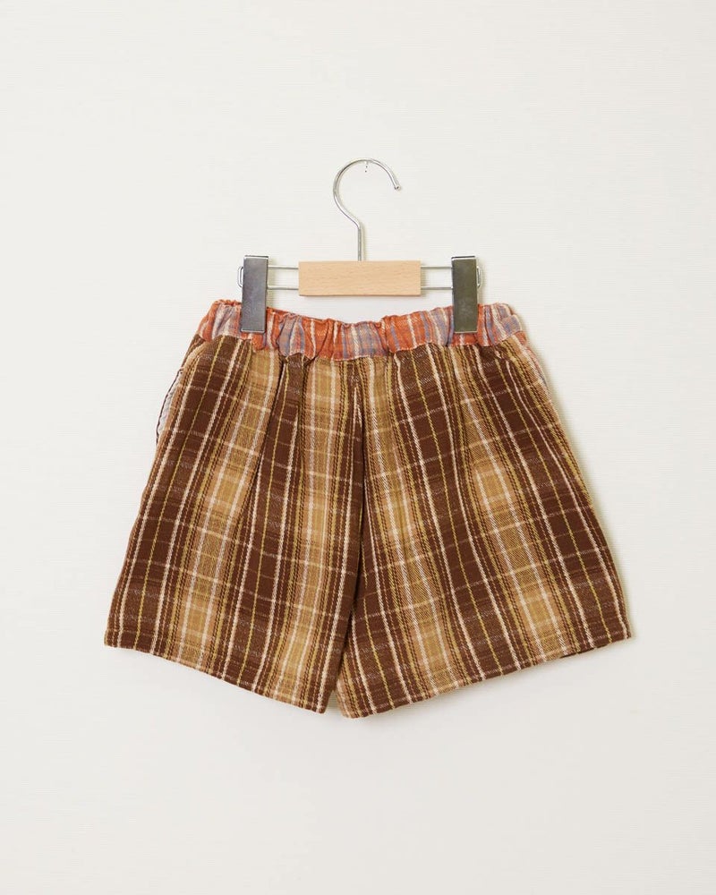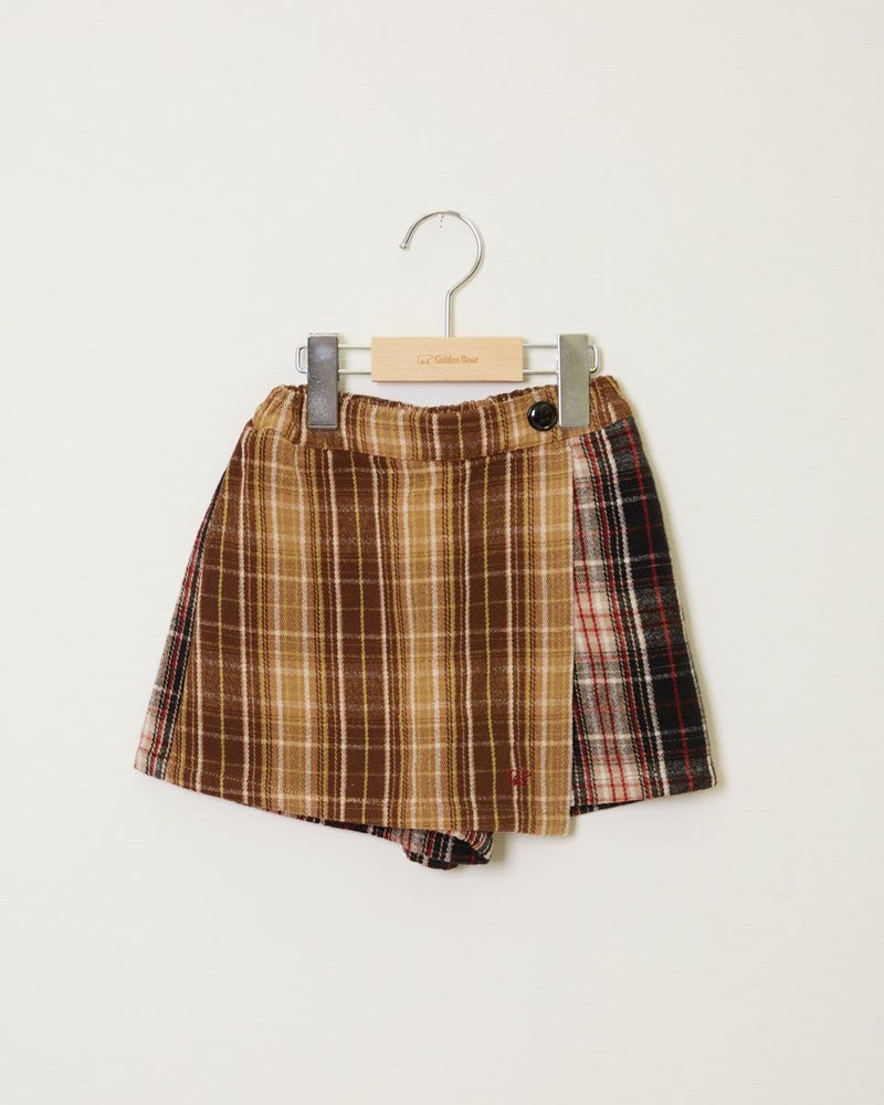 起毛のチェック素材を用いたラップスカート風のショートパンツです!