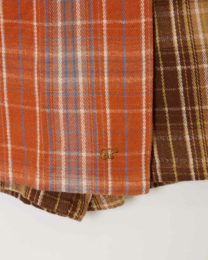 オレンジ×ブラウン、ブラウン×ブラックの配色使いで着こなしの主役になるアイテムです。