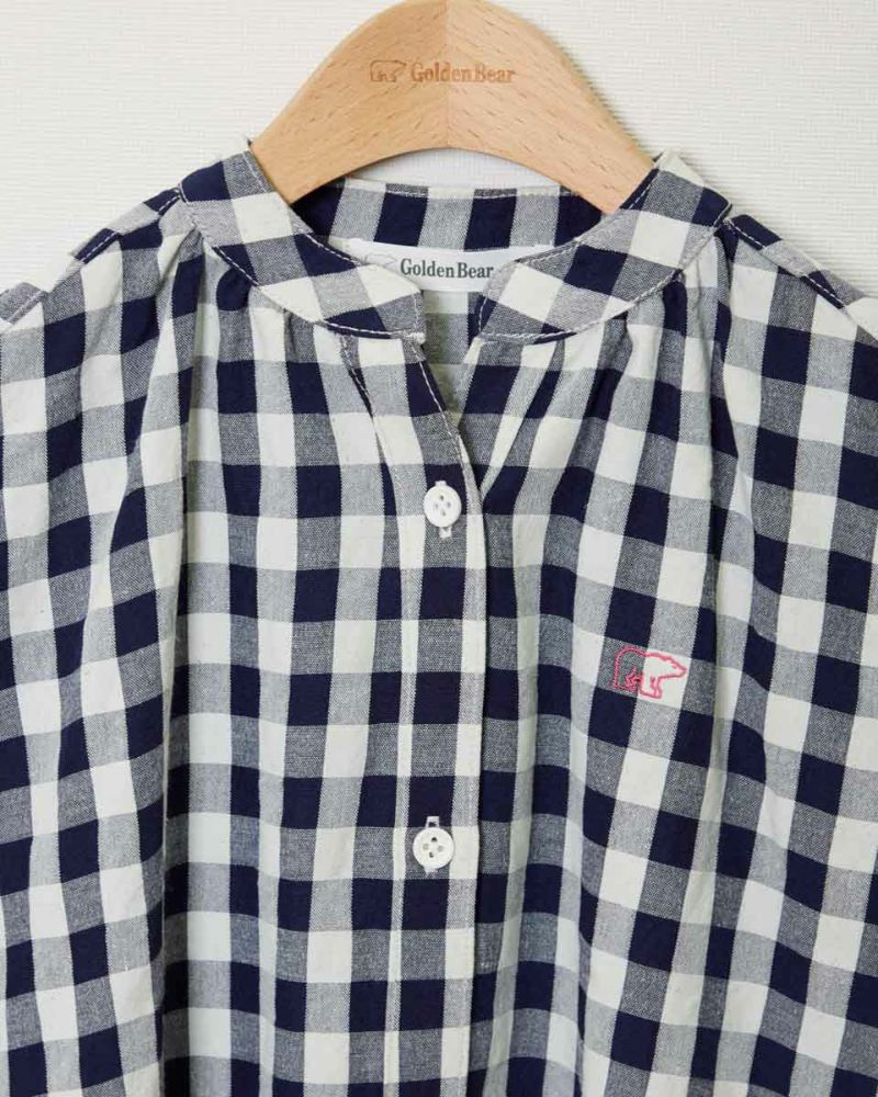 夏らしいチェック柄がステキなバンドカラーのワンピースです。