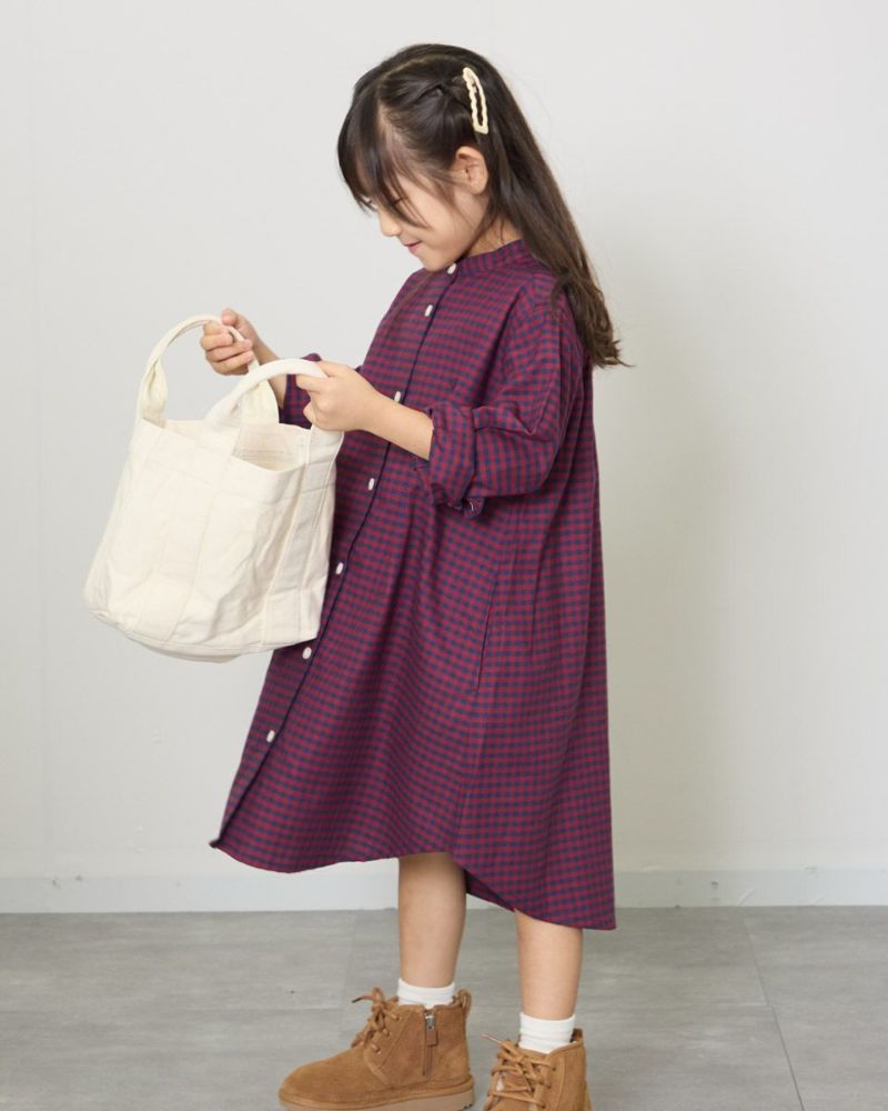 一枚で季節感のあるお出かけコーデが完成するチェックワンピースです。 かっちりしすぎないよう、襟をバンドカラーにし、優しい表情に仕上げているのもポイントです。 あたたかみのある風合いと柔らかな肌触りで、前を開けて羽織としても着用できます。 ガールズモデル身長:109cm 着用サイズ:レッド / 120サイズ ネイビー / 110サイズ Golden Bear Kids ワンピース (Kids) ギンガムチェックシャツ(Kids)はこちら レディースサイズはこちら 家族コーディネートアイテムはこちら