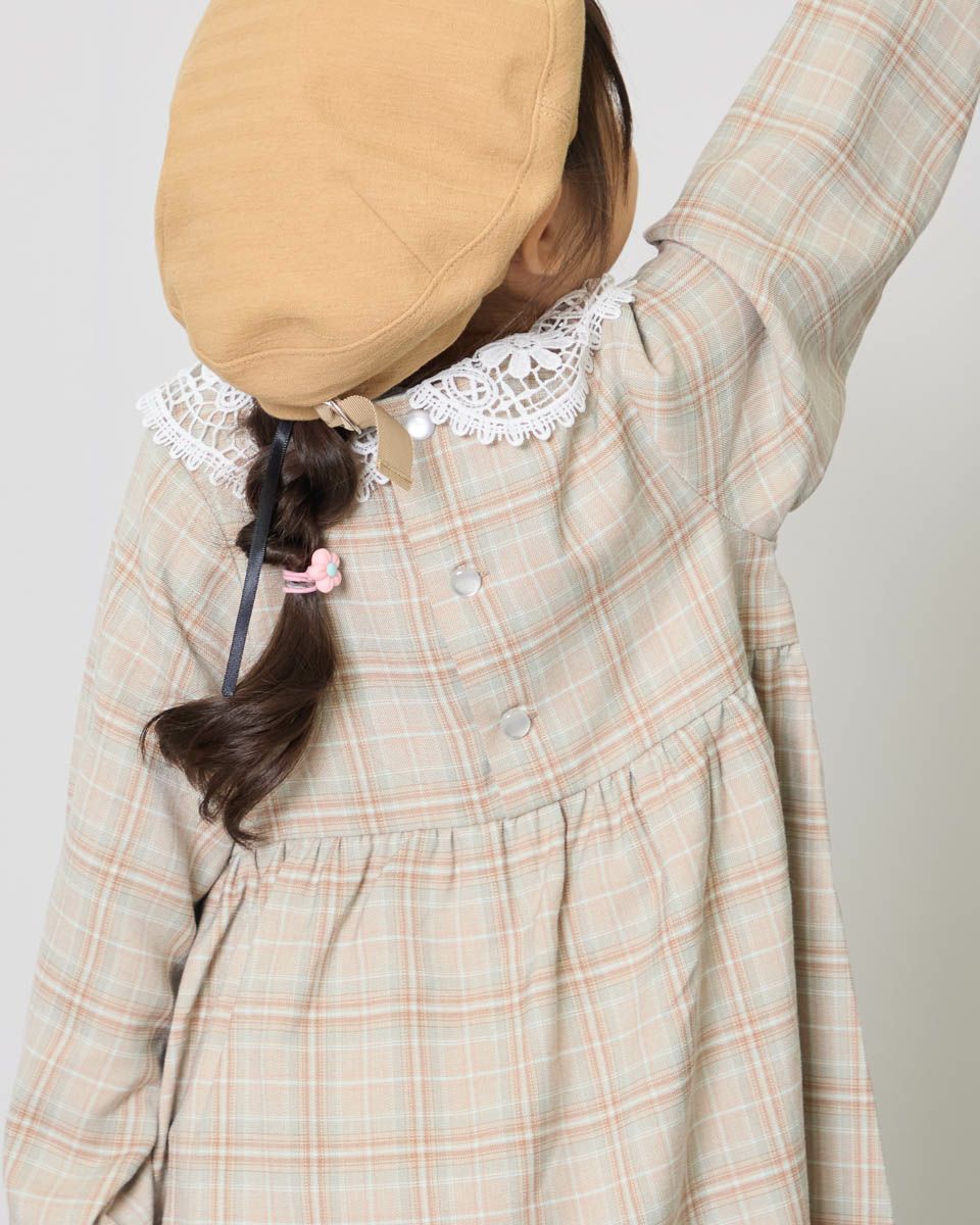胸下の切り替えでふんわりとした可愛らしいシルエットとレースを使用した襟が大人顔負けのデザインです。