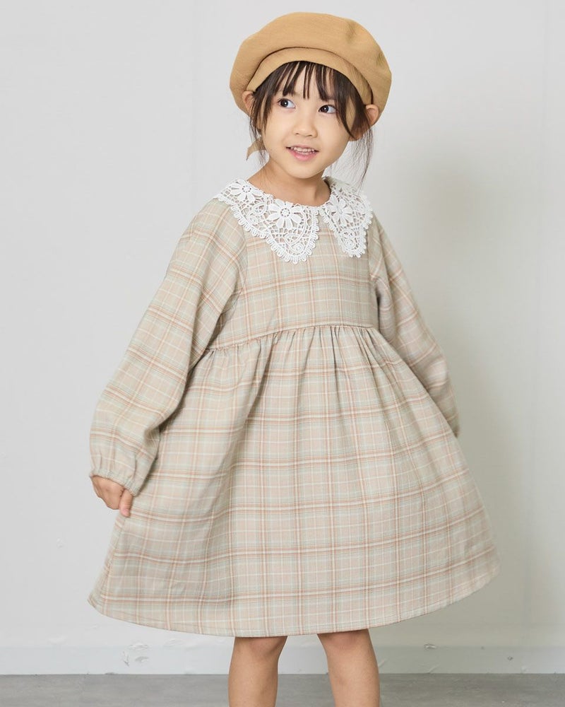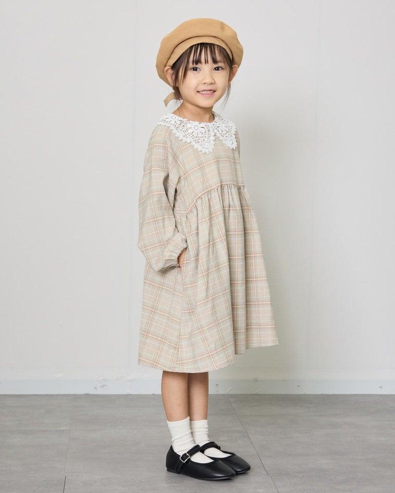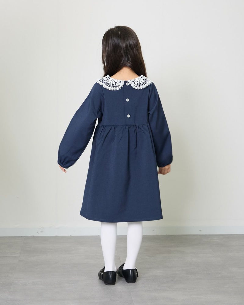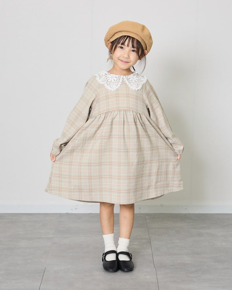 胸下の切り替えでふんわりとした可愛らしいシルエットとレースを使用した襟が大人顔負けのデザインです。