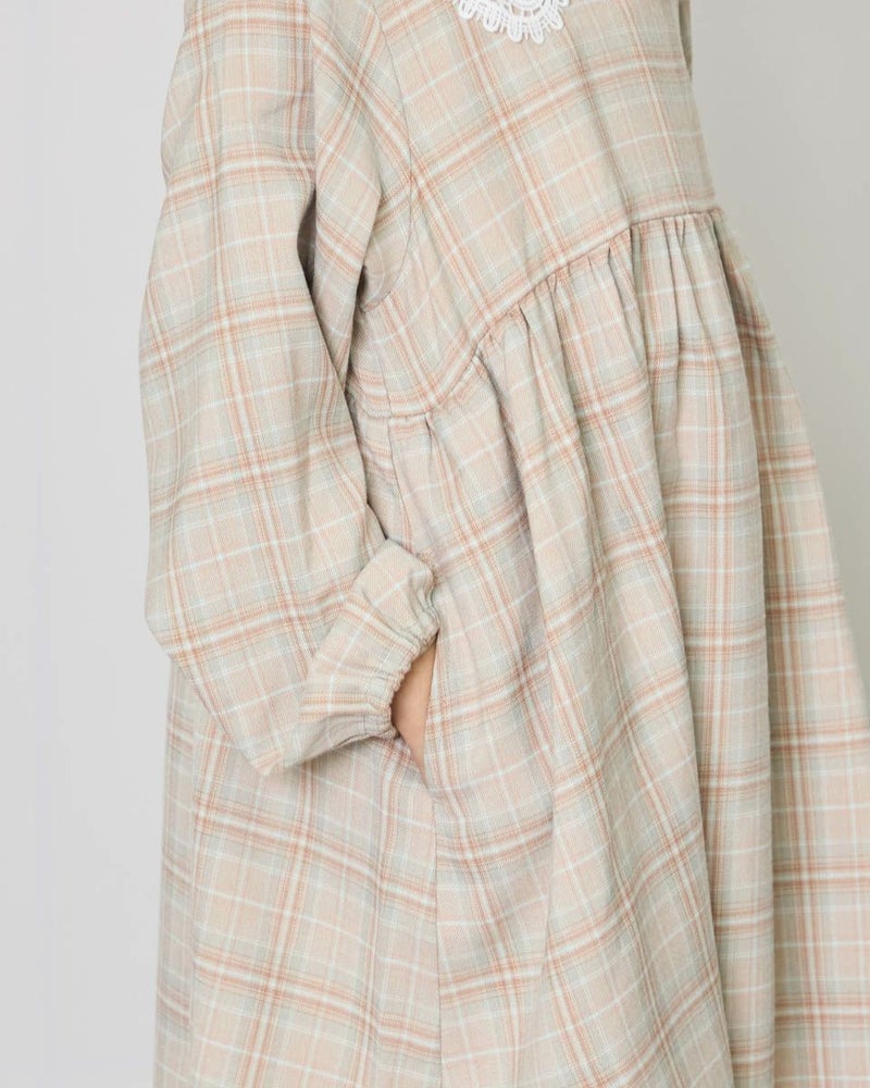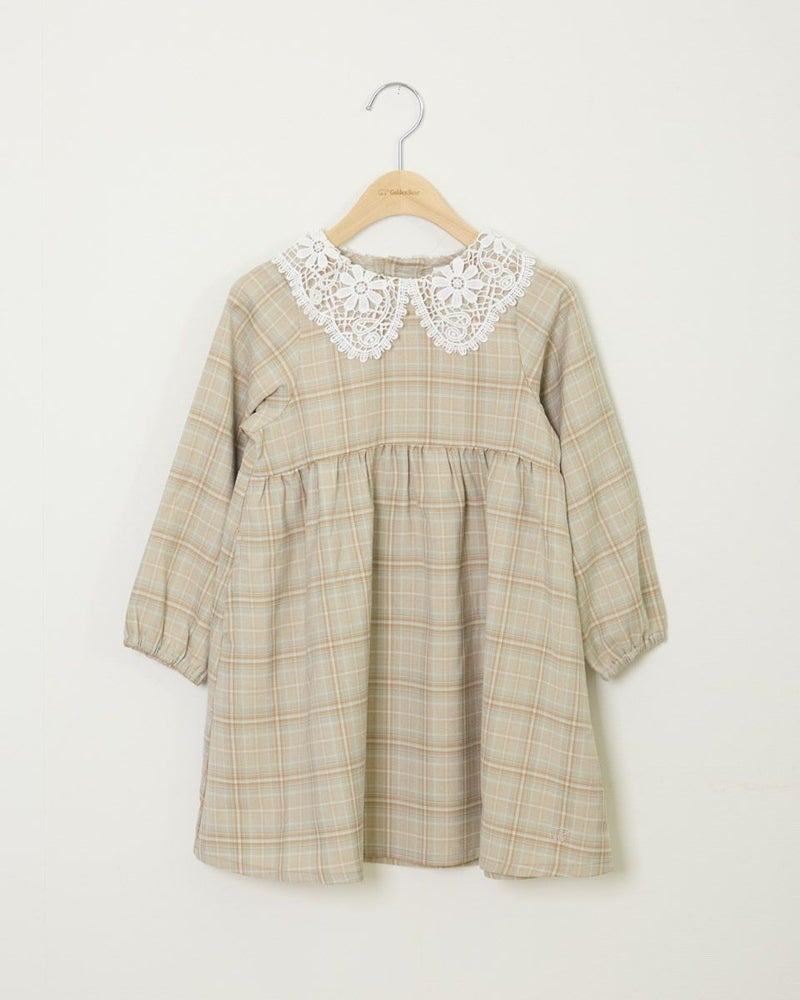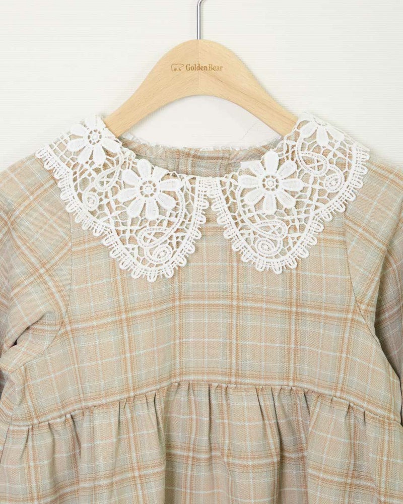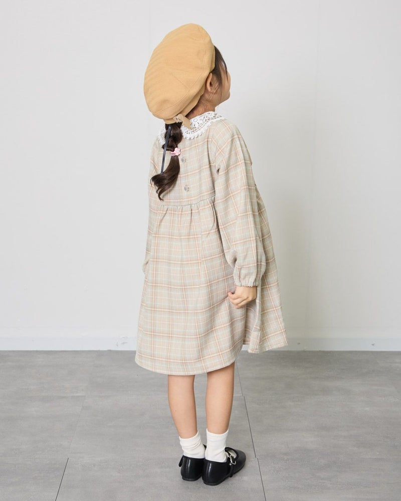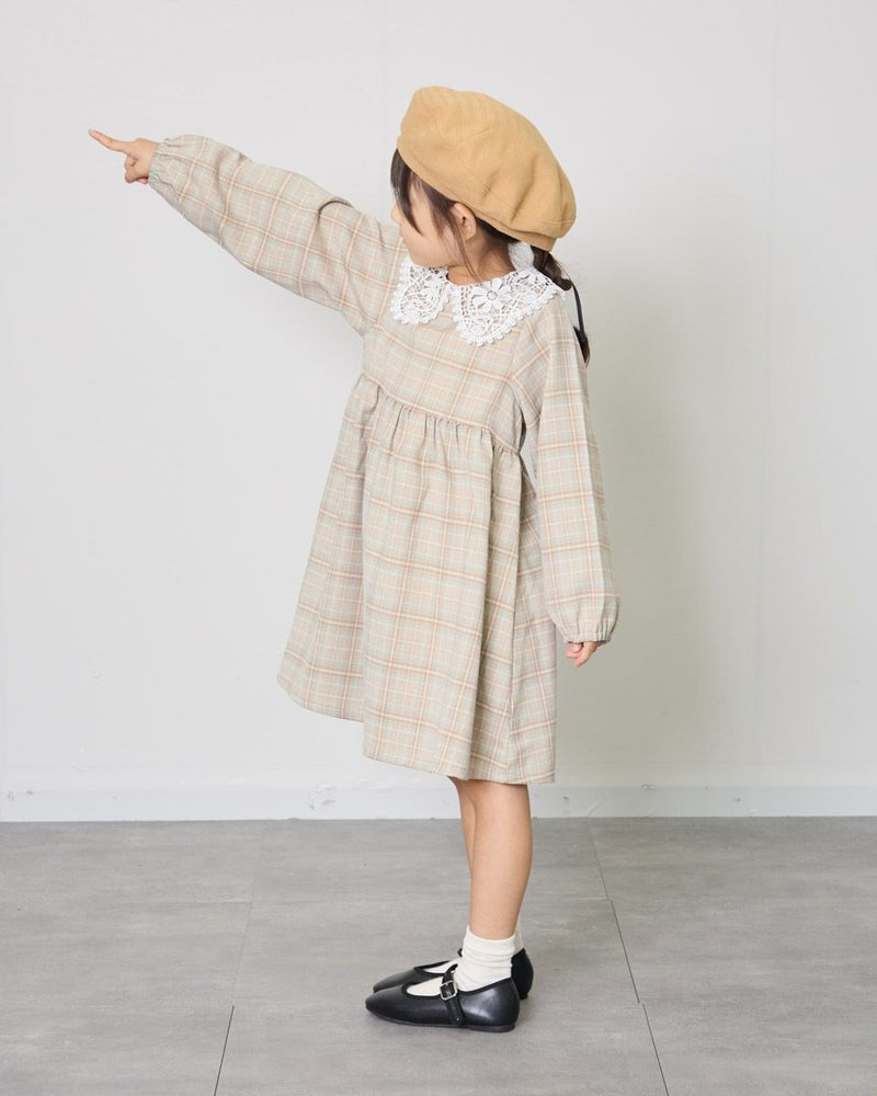 胸下の切り替えでふんわりとした可愛らしいシルエットとレースを使用した襟が大人顔負けのデザインです。