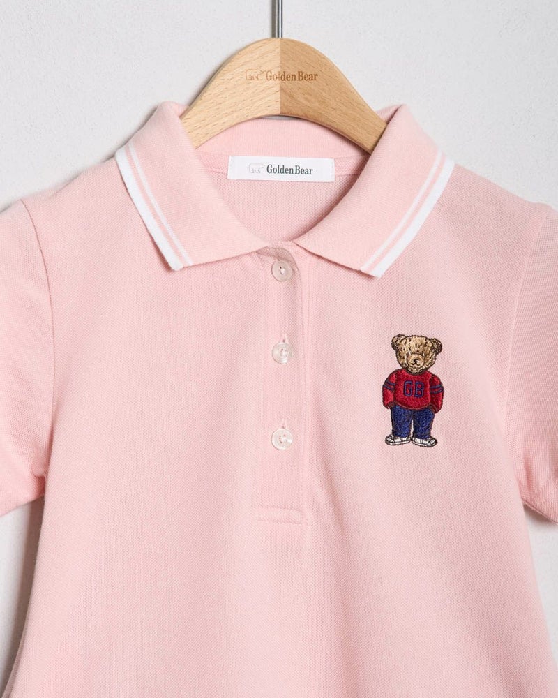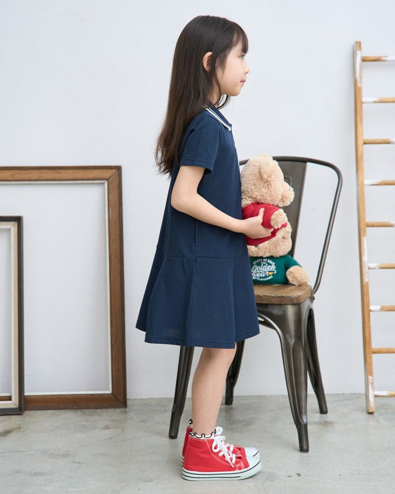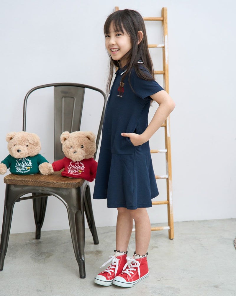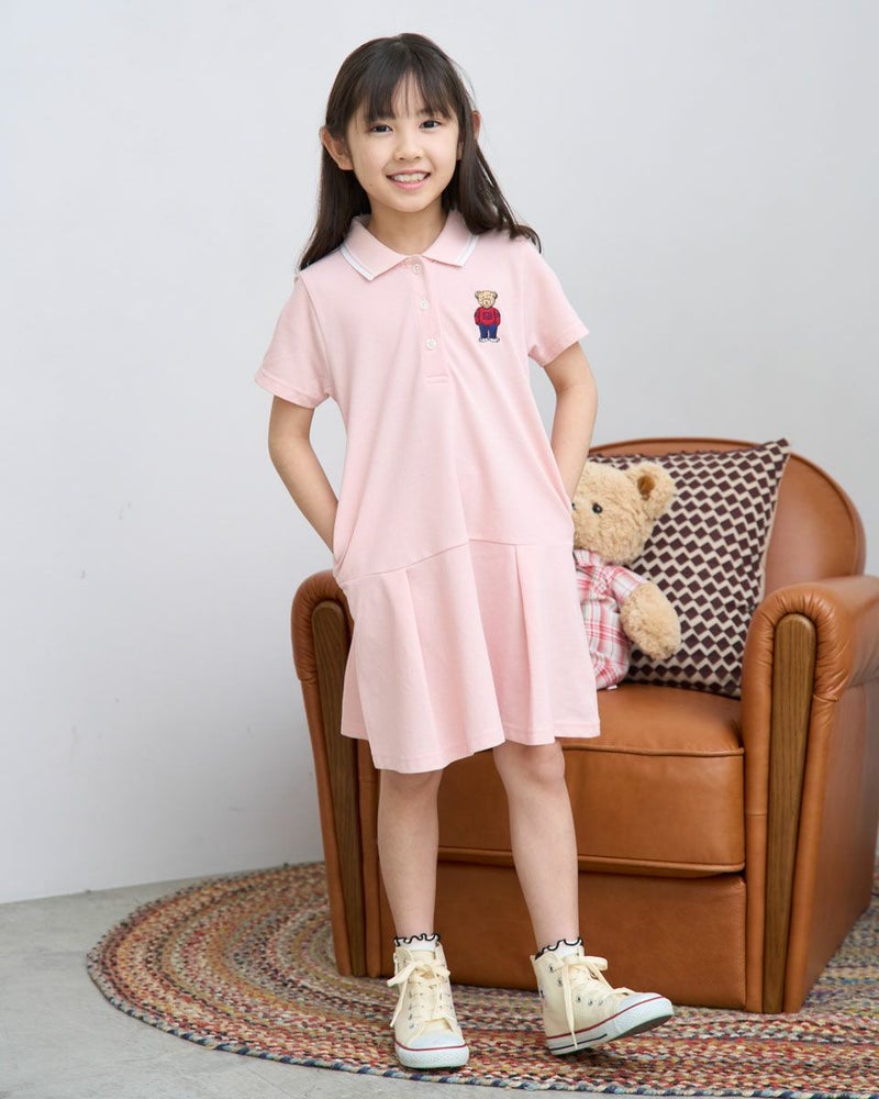 吸水速乾、制菌、防臭の機能を兼ね備えたカノコ素材のポロワンピースです。ポリエステル混でシワになりにくく使い勝手の良い素材です。落ち着いた雰囲気の切り替えのデザインは、普段着にもかしこまった席にも使えるアイテムです。胸のJACKベア刺繍が可愛い1枚です。 ガールズモデル身長: 120 cm 着用サイズ: 120 サイズ Golden Bear KIDS ワンピース (KIDS) キッズ同素材ポロシャツはこちら ウィメンズ同素材はこちら メンズ同素材はこちら 家族コーディネートアイテムはこちら