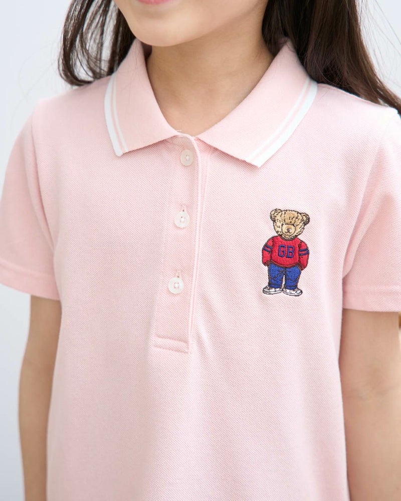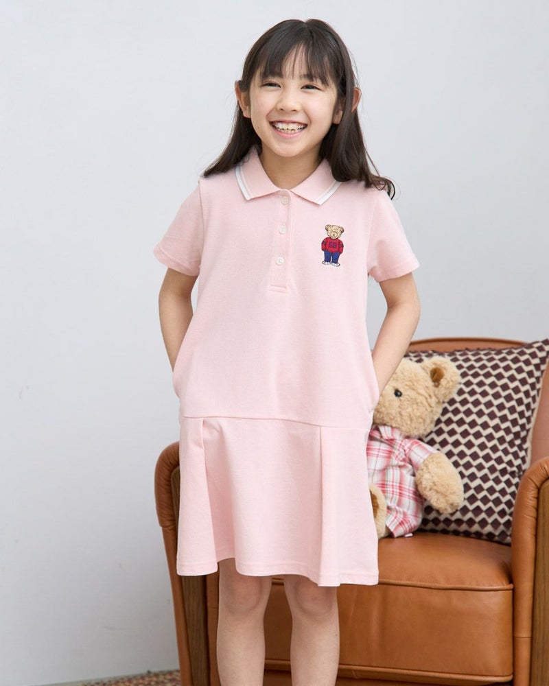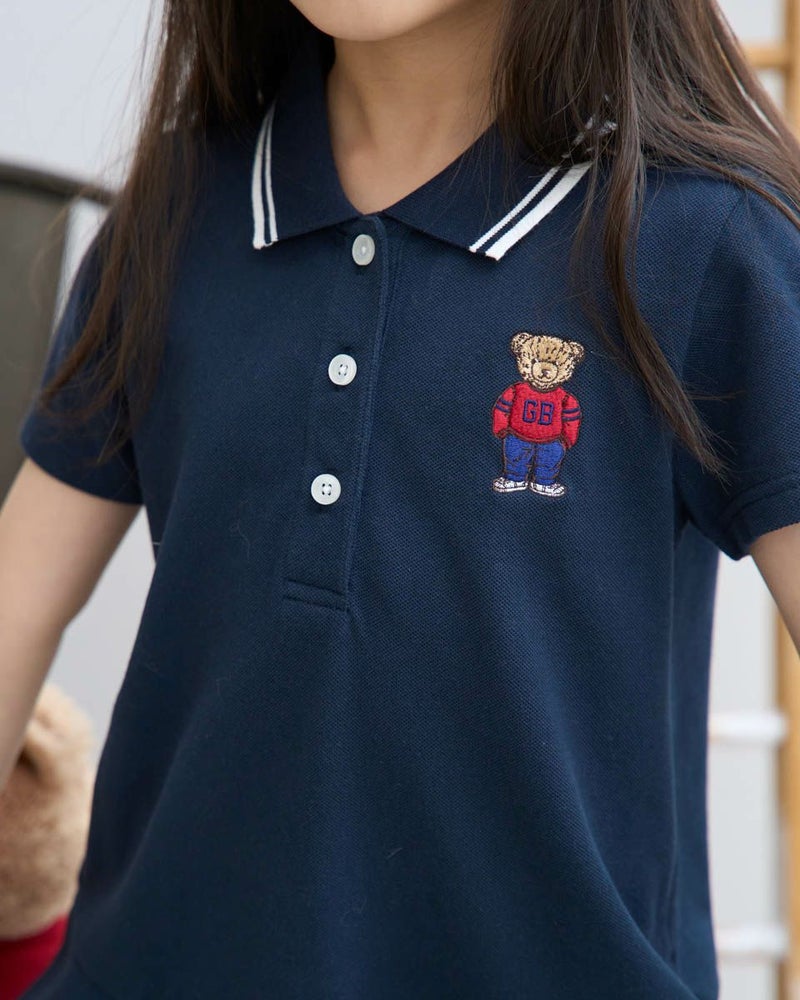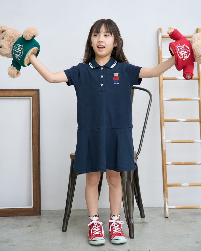 吸水速乾、制菌、防臭の機能を兼ね備えたカノコ素材のポロワンピースです。ポリエステル混でシワになりにくく使い勝手の良い素材です。落ち着いた雰囲気の切り替えのデザインは、普段着にもかしこまった席にも使えるアイテムです。胸のJACKベア刺繍が可愛い1枚です。 ガールズモデル身長: 120 cm 着用サイズ: 120 サイズ Golden Bear KIDS ワンピース (KIDS) キッズ同素材ポロシャツはこちら ウィメンズ同素材はこちら メンズ同素材はこちら 家族コーディネートアイテムはこちら