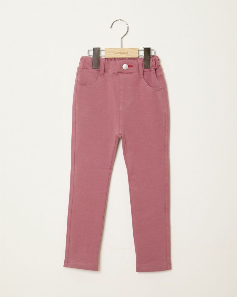 デイリー使いにオススメな、スキニーパンツです。ウエストはオールゴム仕様。カットソー素材を用いているので伸縮性も抜群で、お外でたくさん動くお子様の味方です!ピンクとデニム見えのネイビーの2色展開。男の子と女の子共通でご利用いただけます!