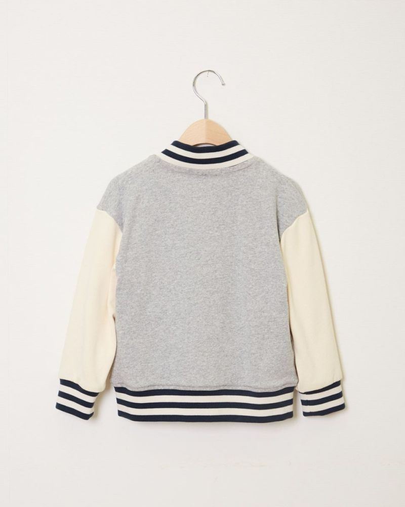 身頃と袖を配色使いにし、リブもボーダー柄を採用。ポケット付き。