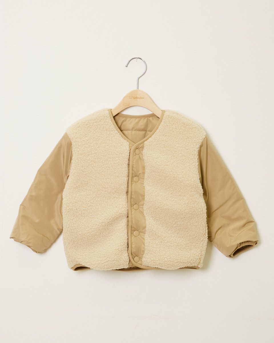 ポリエステル素材とボア素材をドッキングしたキルトジャケットです!