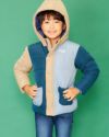 ふっくらと温かい中綿のキルトジャケットです。 同色系でまとめたベージュと、コントラストが映えるネイビーの2色展開。 フード付きなので、アウトドアにも最適です! 男の子、女の子兼用でご利用いただけます。