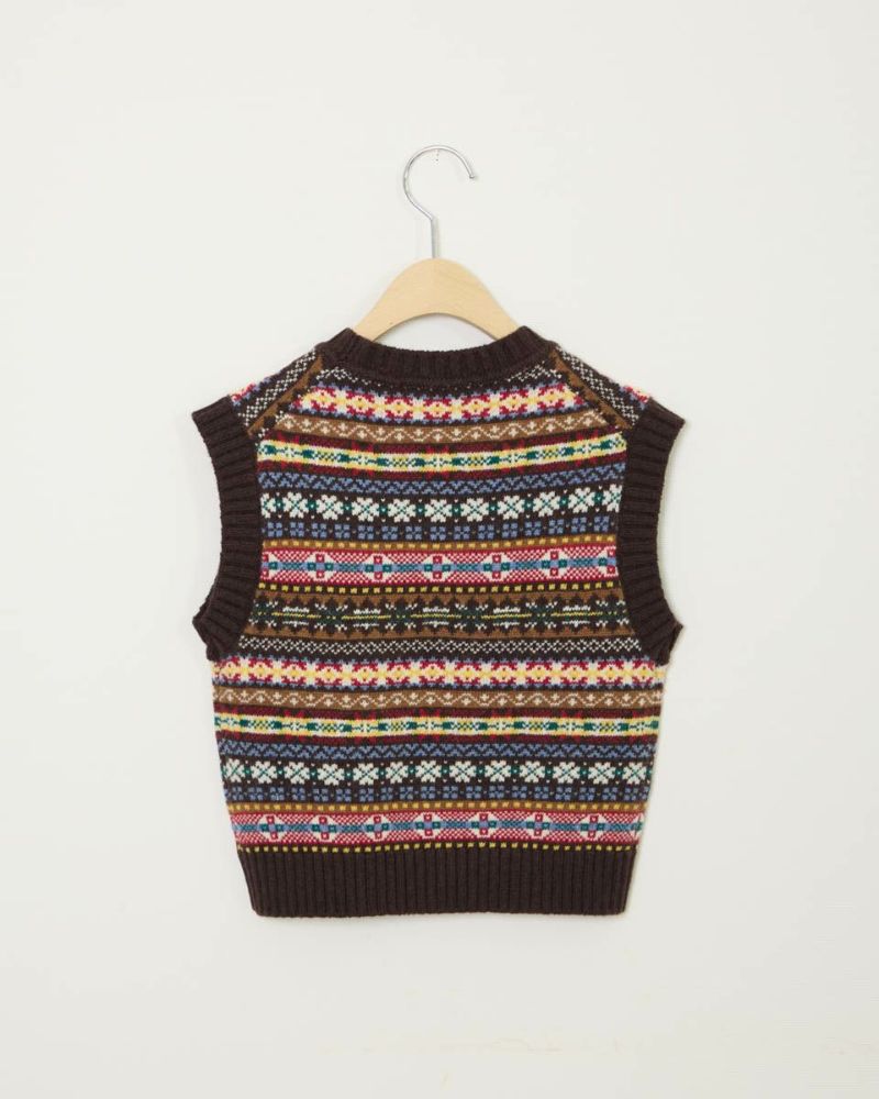 どこか懐かしく温かみのあるフェアアイル柄のニットベストです。 シャツやカットソーとのレイヤードで、寒い季節のコートインにもちょうどいいアイテムです。 ファミリー企画としておそろいの素材感で展開しています。 ボーイズモデル身長: 108 cm 着用サイズ: 110 サイズ ニット (Kids) 同素材のレディースはこちら 同素材のメンズはこちら 家族コーディネートアイテムはこちら