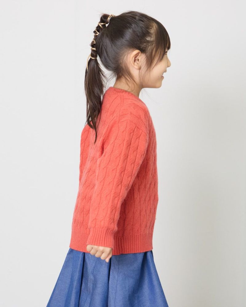 昨年末に孫へのクリスマスプレゼントに購入しました。 デニムに合わせましたが、色も綺麗なレッドで、とても可愛いニットでした。 孫も可愛いと気に入って、着ております。 何度か洗濯しましたが、毛玉もできていないし、購入して良かったと思います。