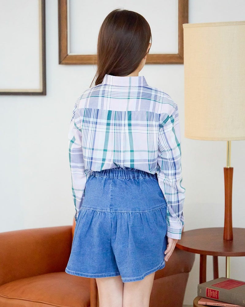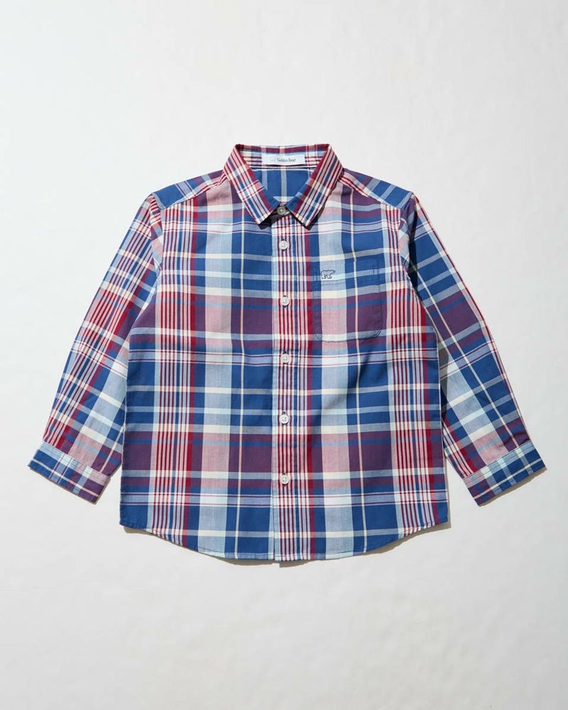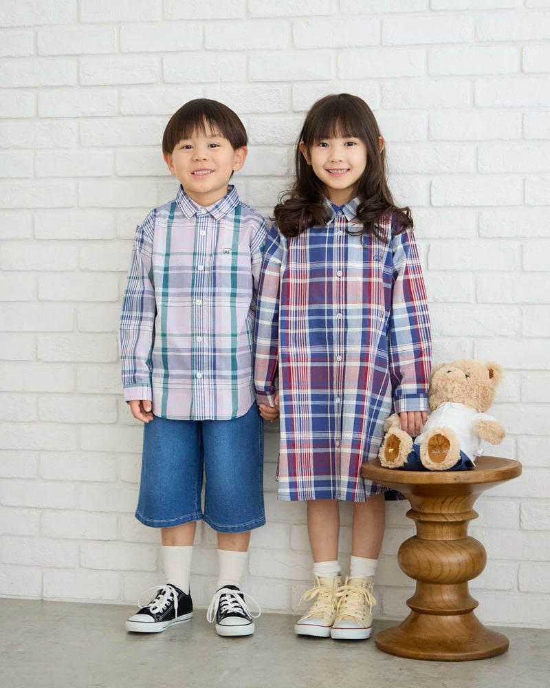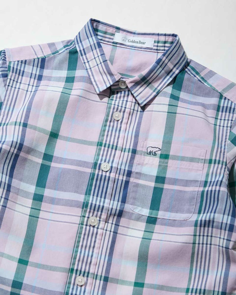オリジナルチェック柄のシャツです。 ドライな肌触りで春先から夏にかけてサラッと着用して頂けます。 胸元のくま刺しゅうがワンポイントアクセントになっています。 飽きの来ないデザインも魅力。202R2802のワンピースも同素材を使用しているので、家族コーディネートでお楽しみいただけます。 ボーイズモデル身長:112cm 着用サイズ:120サイズ ガールズモデル身長:138cm 着用サイズ:140サイズ Golden Bear KIDS ブラウス (KIDS) ワンピース (KIDS)はこちら ウィメンズサイズはこちら メンズサイズはこちら 家族コーディネートアイテムはこちら