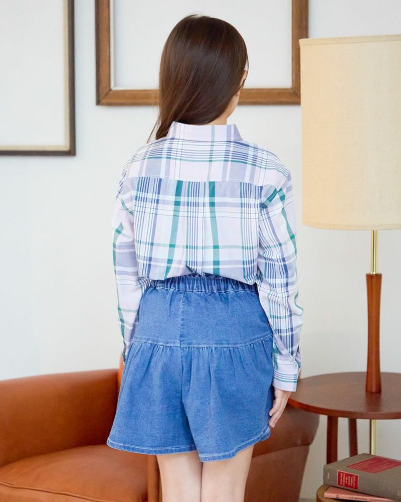 オリジナルチェック柄のシャツです。 ドライな肌触りで春先から夏にかけてサラッと着用して頂けます。 胸元のくま刺しゅうがワンポイントアクセントになっています。 飽きの来ないデザインも魅力。202R2802のワンピースも同素材を使用しているので、家族コーディネートでお楽しみいただけます。 ボーイズモデル身長:112cm 着用サイズ:120サイズ ガールズモデル身長:138cm 着用サイズ:140サイズ Golden Bear Kids ブラウス (Kids) ワンピース (Kids)はこちら レディースサイズはこちら メンズサイズはこちら 家族コーディネートアイテムはこちら
