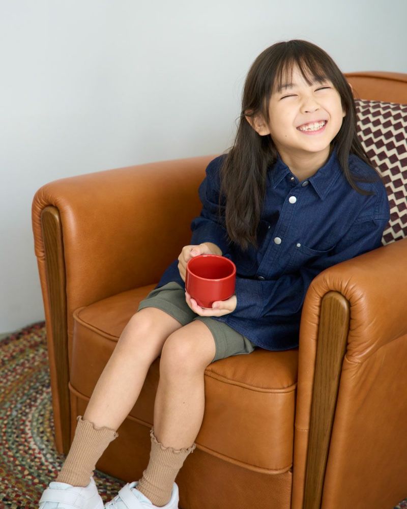 柔らかい素材でちょっとした羽織としても使いやすいアイテムです。ゆとりを持たせたシルエットです。脱ぎ着しやすく、成長に合わせて長く着られるのも嬉しいポイントです。カジュアルすぎないメタル釦がアクセントで、着脱も簡単にできる使用にしています。 ボーイズモデル身長: 117 cm 着用サイズ: 120 サイズ ガールズモデル身長: 119 cm 着用サイズ: 120 サイズ Golden Bear Kids ブラウス (Kids) キッズ同素材はこちら レディース同素材はこちら 家族コーディネートアイテムはこちら