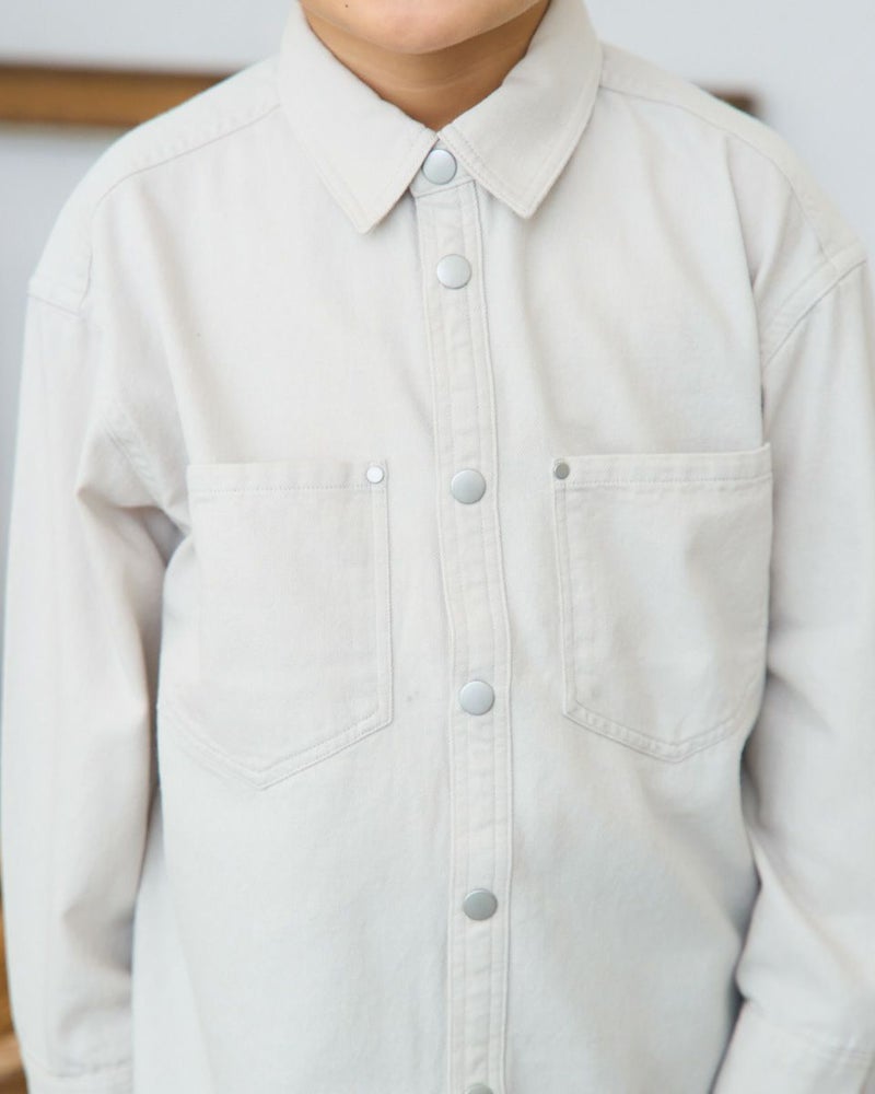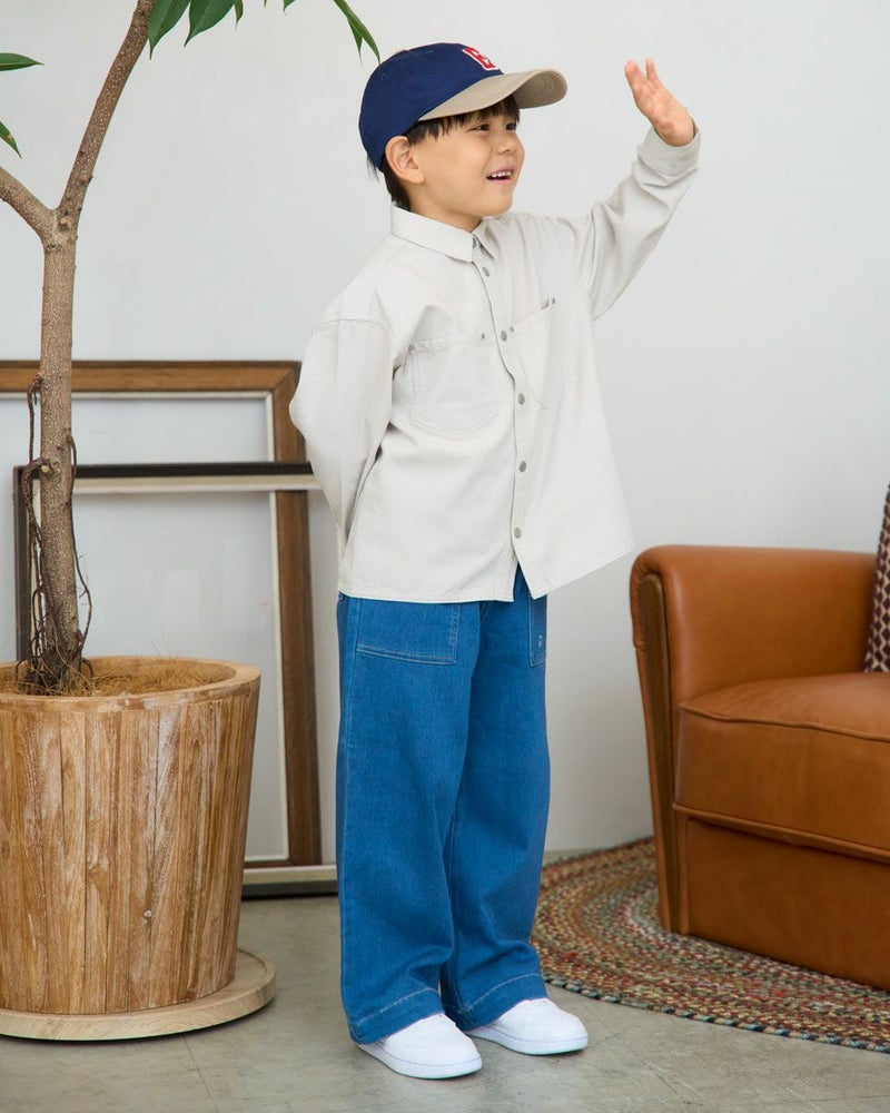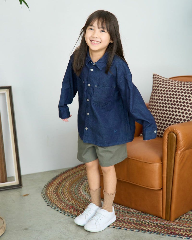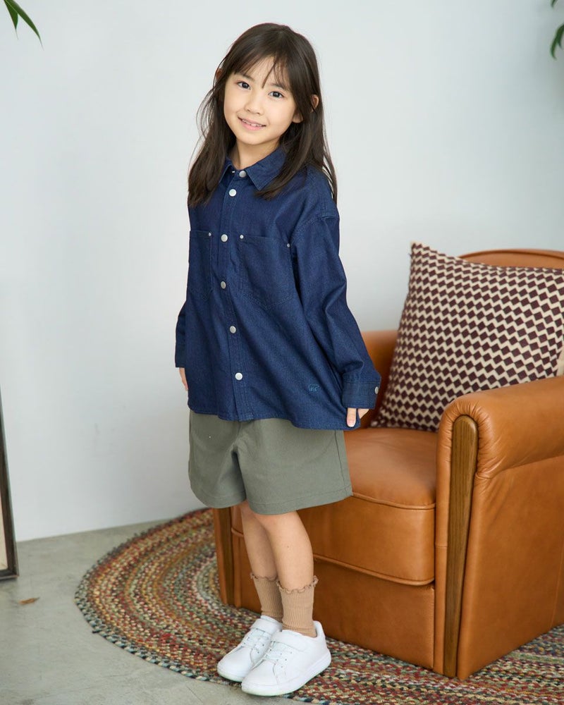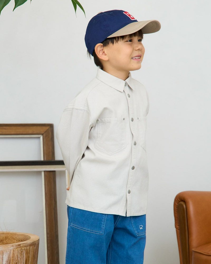 柔らかい素材でちょっとした羽織としても使いやすいアイテムです。ゆとりを持たせたシルエットです。脱ぎ着しやすく、成長に合わせて長く着られるのも嬉しいポイントです。カジュアルすぎないメタル釦がアクセントで、着脱も簡単にできる使用にしています。 ボーイズモデル身長: 117 cm 着用サイズ: 120 サイズ ガールズモデル身長: 119 cm 着用サイズ: 120 サイズ Golden Bear KIDS ブラウス (KIDS) キッズ同素材はこちら ウィメンズ同素材はこちら 家族コーディネートアイテムはこちら