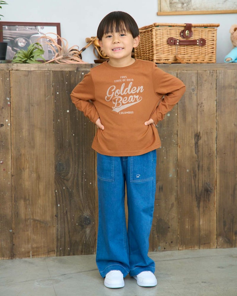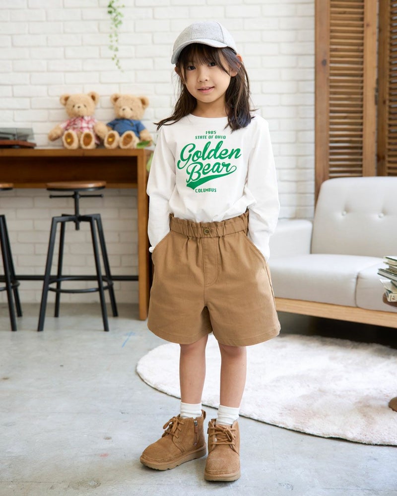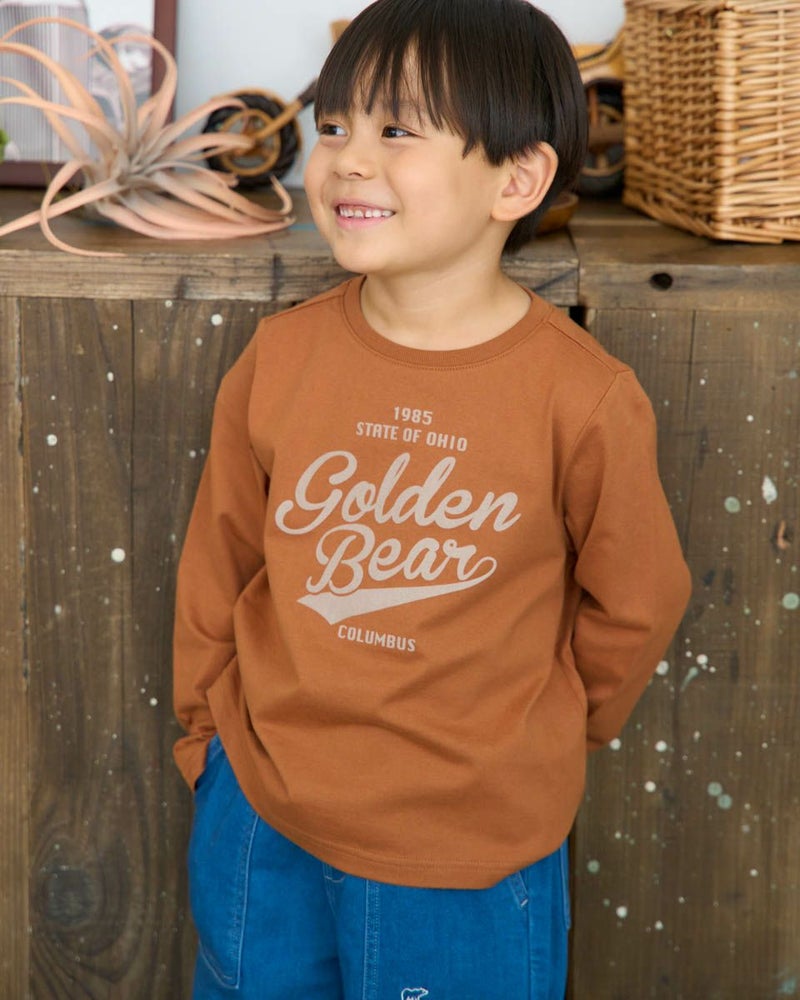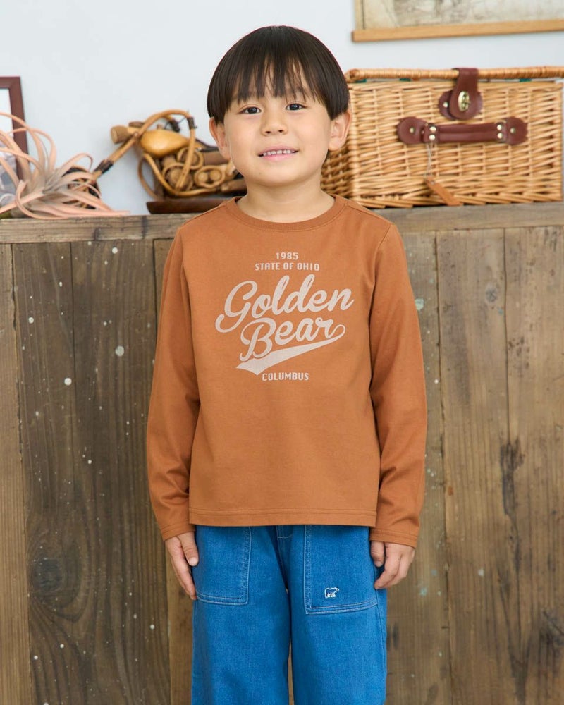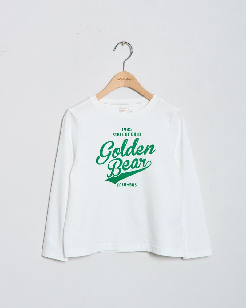 やわらかさが心地よい、オーガニックコットン100%の天竺Tシャツ。フロントには、GOLDEN BEARオリジナルのロゴデザインをフロッキープリントで表現。立体感のある質感がシンプルな中にさりげない個性を添えています。一枚着としてはもちろん、インナー使いでも映える、汎用性の高いアイテムです。