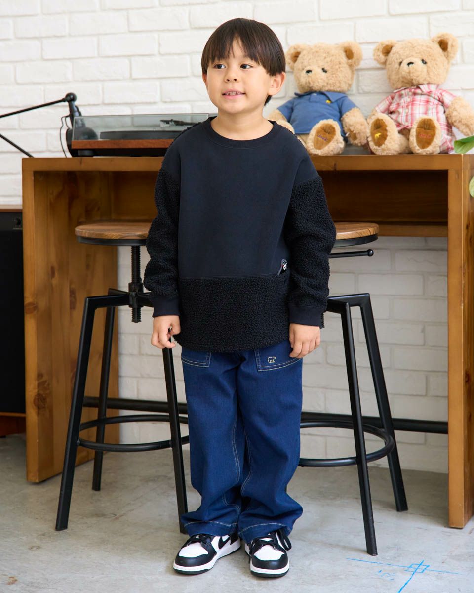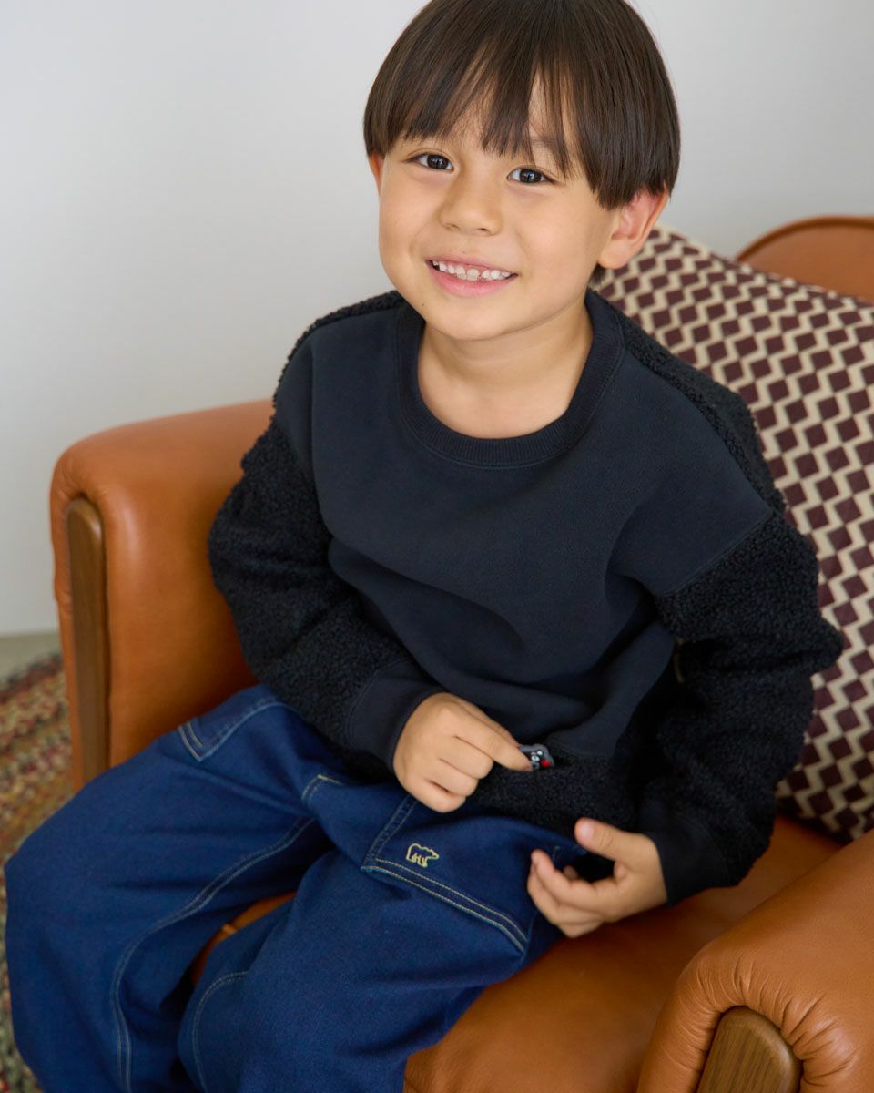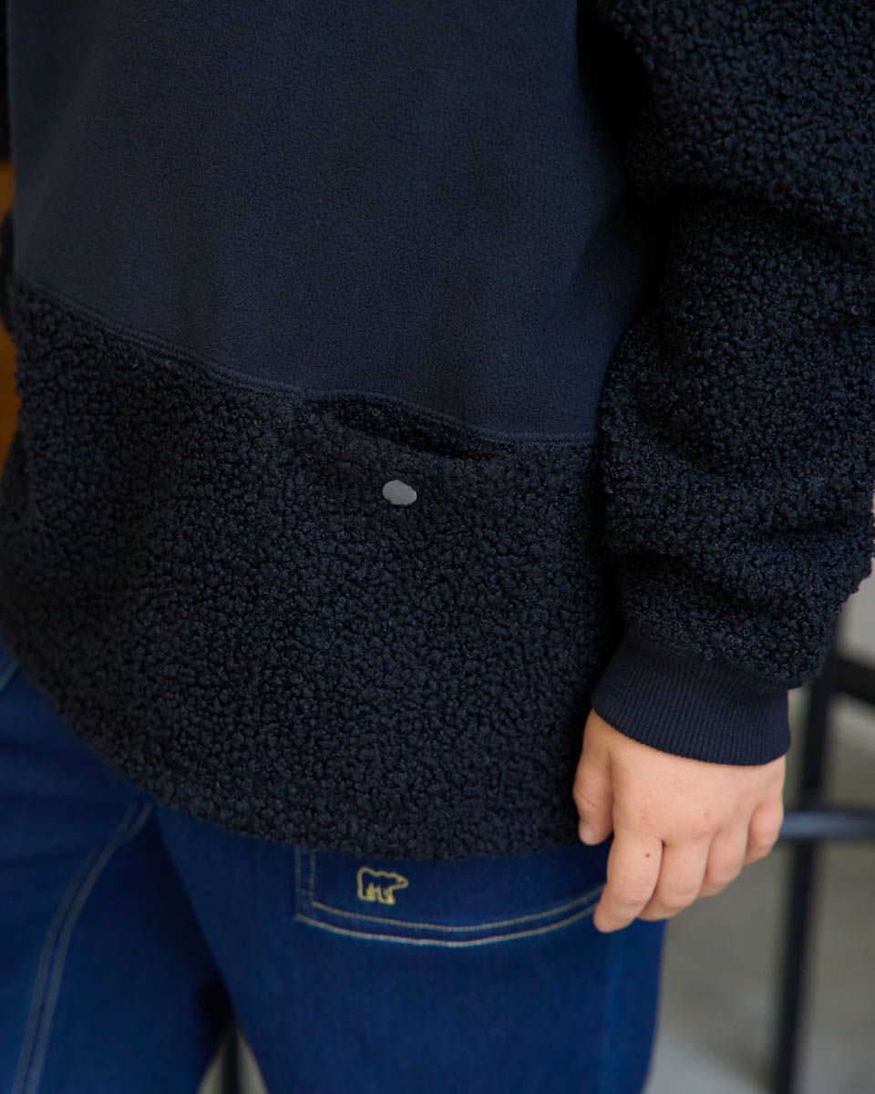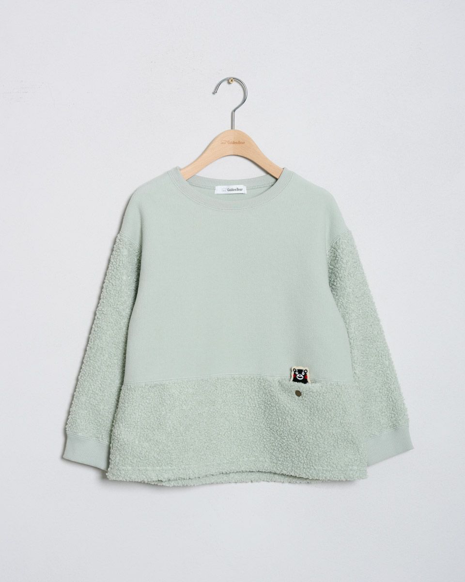 熊本県の人気マスコット“くまモン”をモチーフにしたワッペンがポイントのボアフリースプルオーバー。ふんわりとしたボアと滑らかなフリースの異素材切替で、見た目にも楽しいデザインに仕上げました。ポケットには、さりげなくくまモンが忍ばせてあり、取り外し可能なので気分に合わせてアレンジも楽しめます。