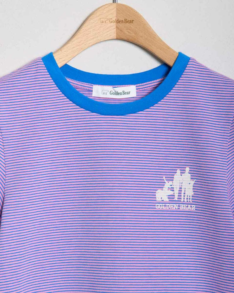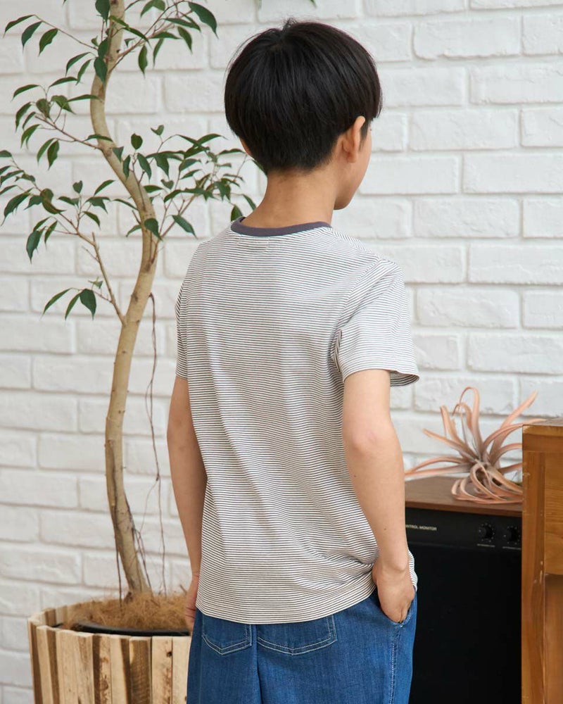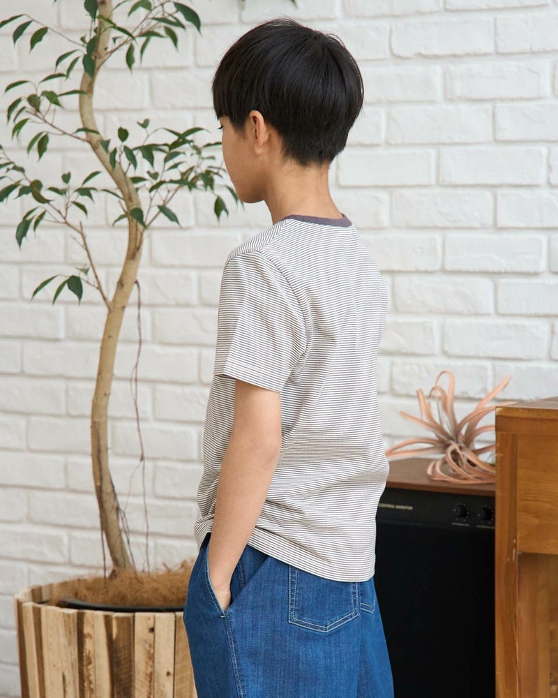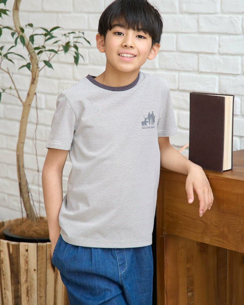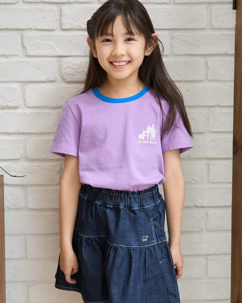 配色襟が目を引く細かいボーダーの半袖Tシャツです。一枚でもインナーとしても使いやすいベーシックなシルエットです。胸にゴールデンベアらしいファミリープリントを入れました。 ボーイズモデル身長: 132 cm 着用サイズ: 140 サイズ ガールズモデル身長: 120 cm 着用サイズ: 120 サイズ Golden Bear KIDS カットソー (KIDS) ウィメンズ同素材はこちら メンズ同素材はこちら 家族コーディネートアイテムはこちら