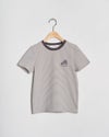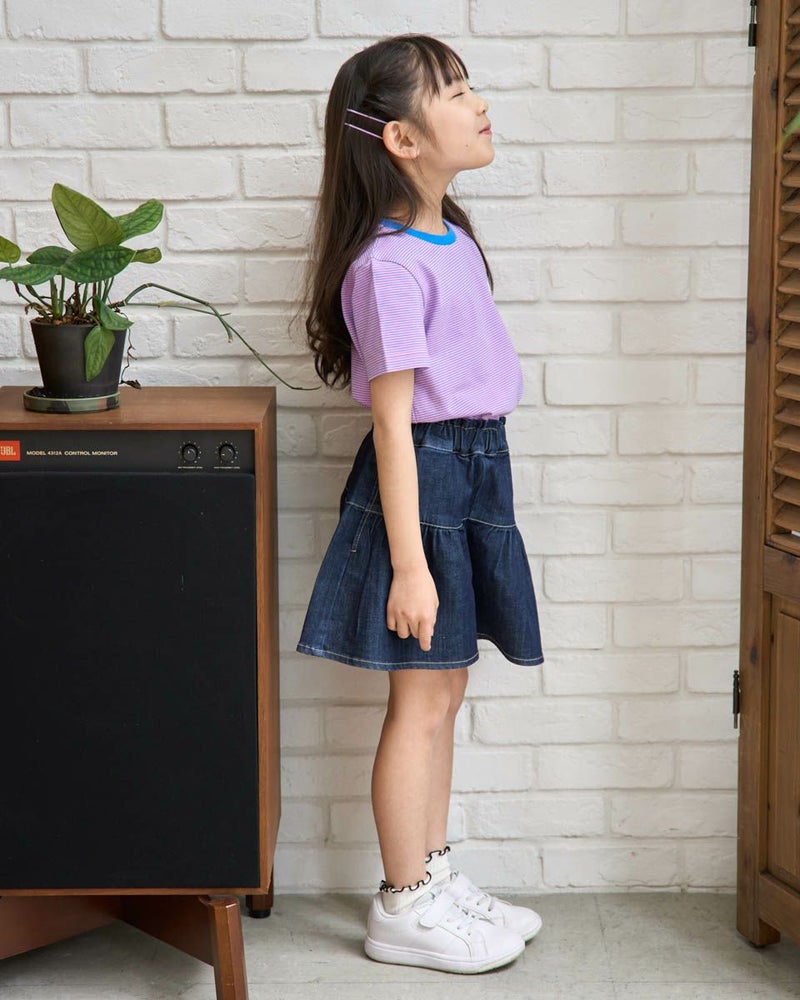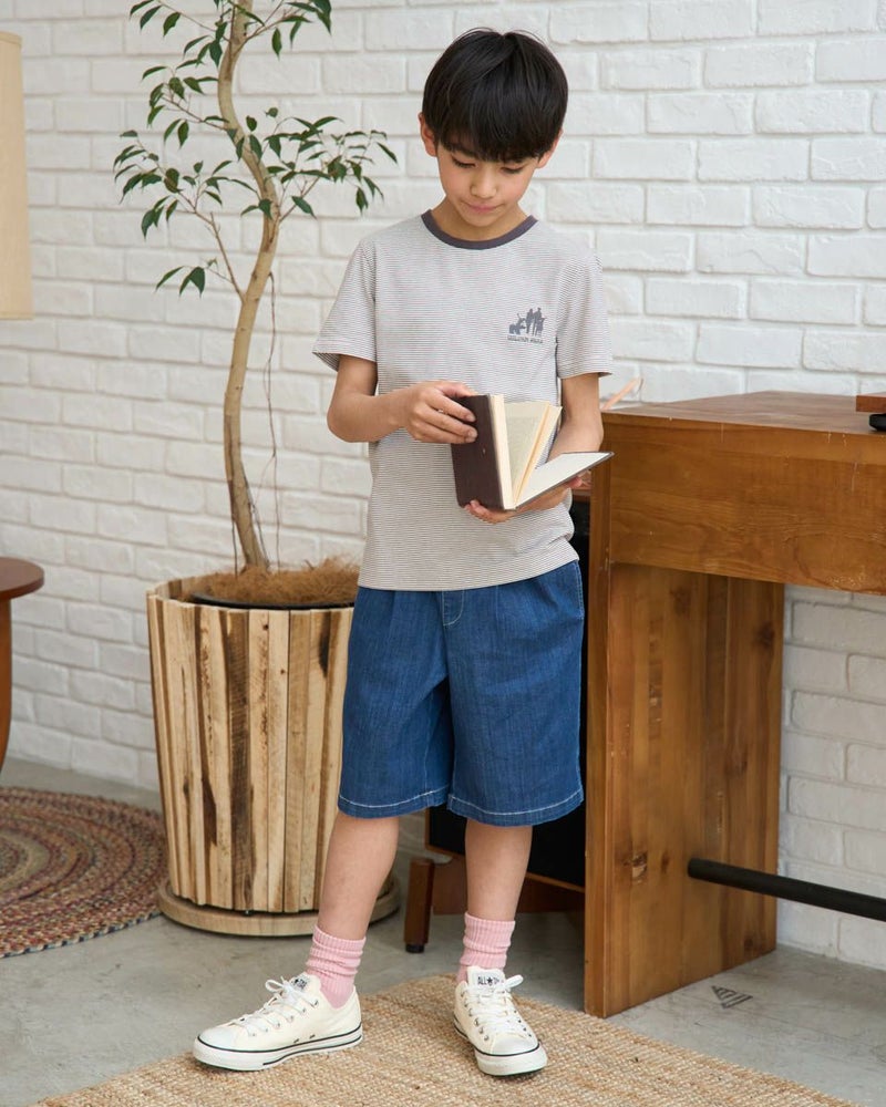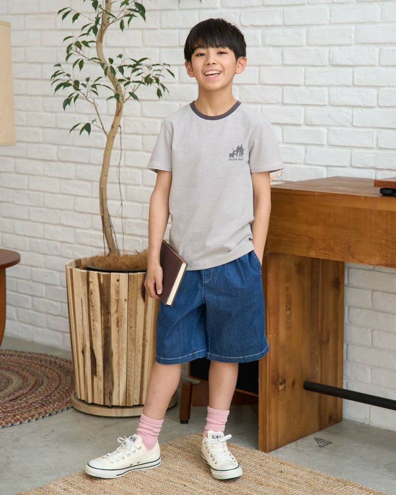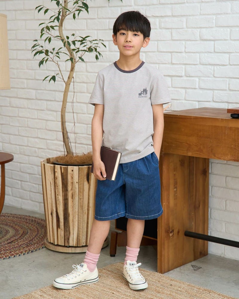 配色襟が目を引く細かいボーダーの半袖Tシャツです。一枚でもインナーとしても使いやすいベーシックなシルエットです。胸にゴールデンベアらしいファミリープリントを入れました。 ボーイズモデル身長: 132 cm 着用サイズ: 140 サイズ ガールズモデル身長: 120 cm 着用サイズ: 120 サイズ Golden Bear KIDS カットソー (KIDS) ウィメンズ同素材はこちら メンズ同素材はこちら 家族コーディネートアイテムはこちら