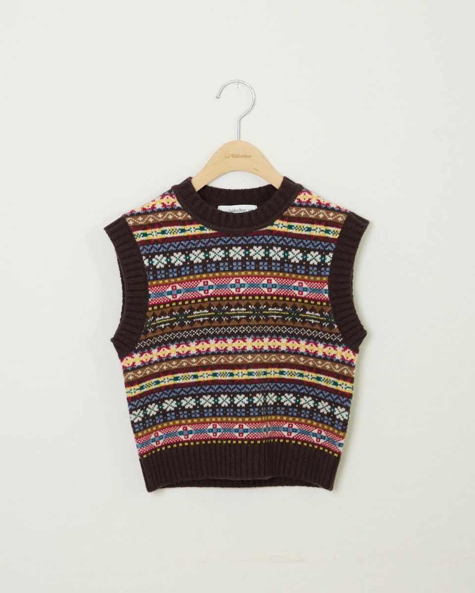 どこか懐かしく温かみのあるフェアアイル柄のニットベストです。 シャツやカットソーとのレイヤードで、寒い季節のコートインにもちょうどいいアイテムです。 ファミリー企画としておそろいの素材感で展開しています。 ボーイズモデル身長: 108 cm 着用サイズ: 110 サイズ ニット (KIDS) 同素材のウィメンズはこちら 同素材のメンズはこちら 家族コーディネートアイテムはこちら