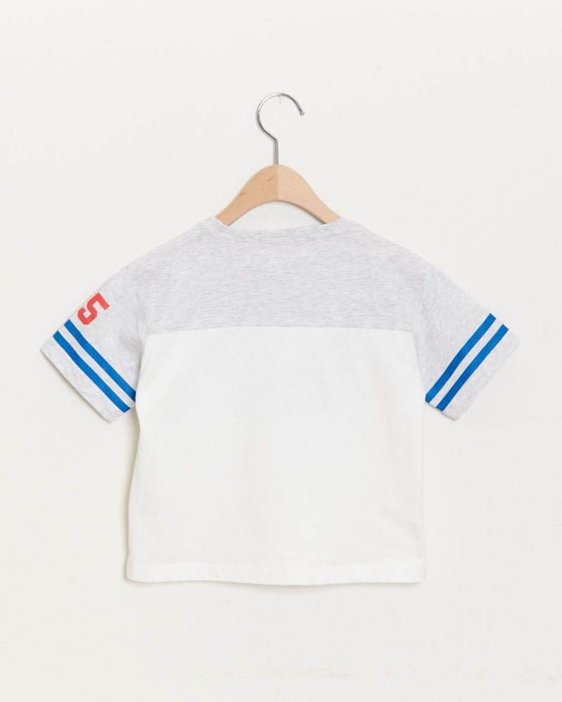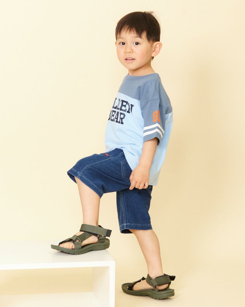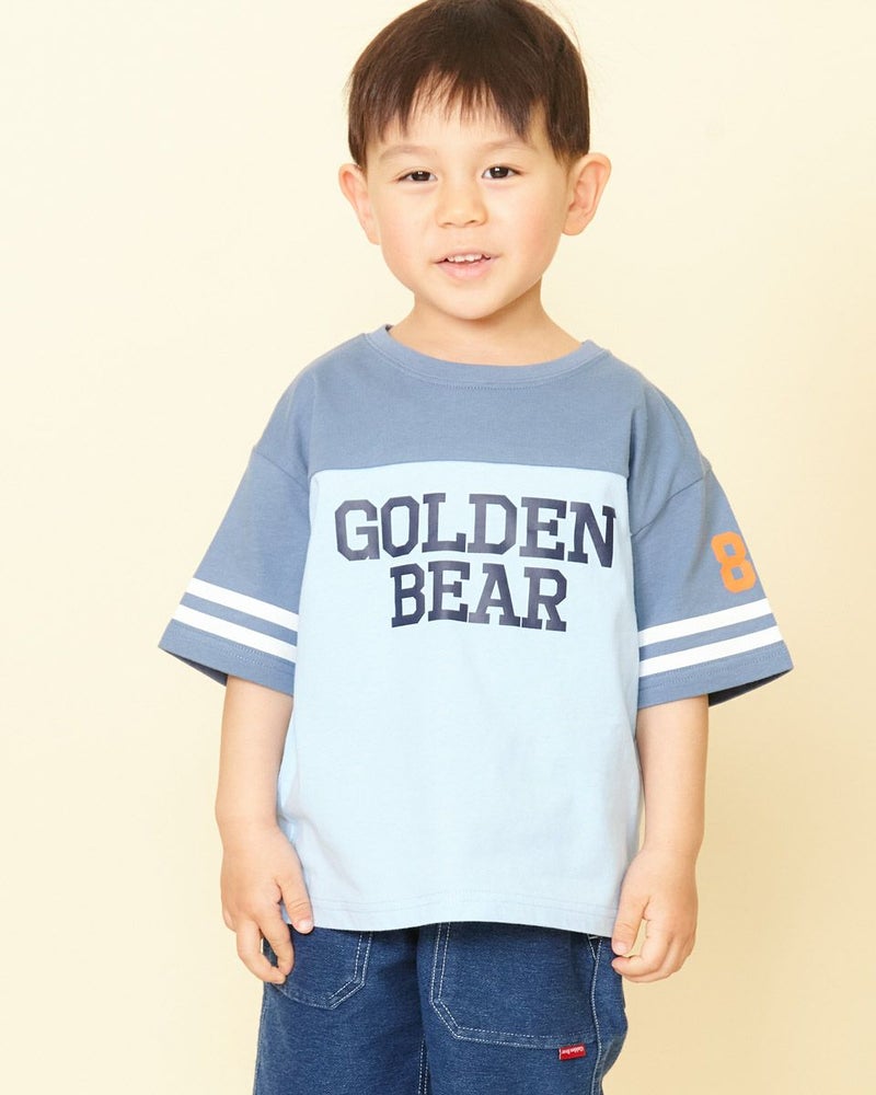 クラッシックなアメリカンモチーフの半袖プリントTシャツです。肩落ちのビックシルエットで、胸元の配色切り替えが目をひくデザインです♪デニムパンツと相性ピッタリです!Boys品番ですが、女の子がカジュアルに着こなしてもステキです!