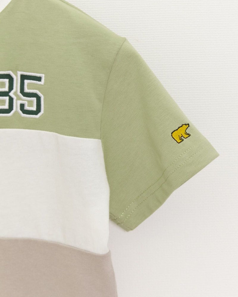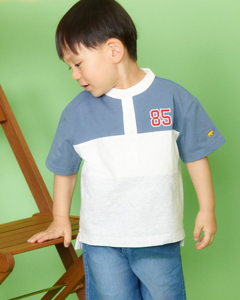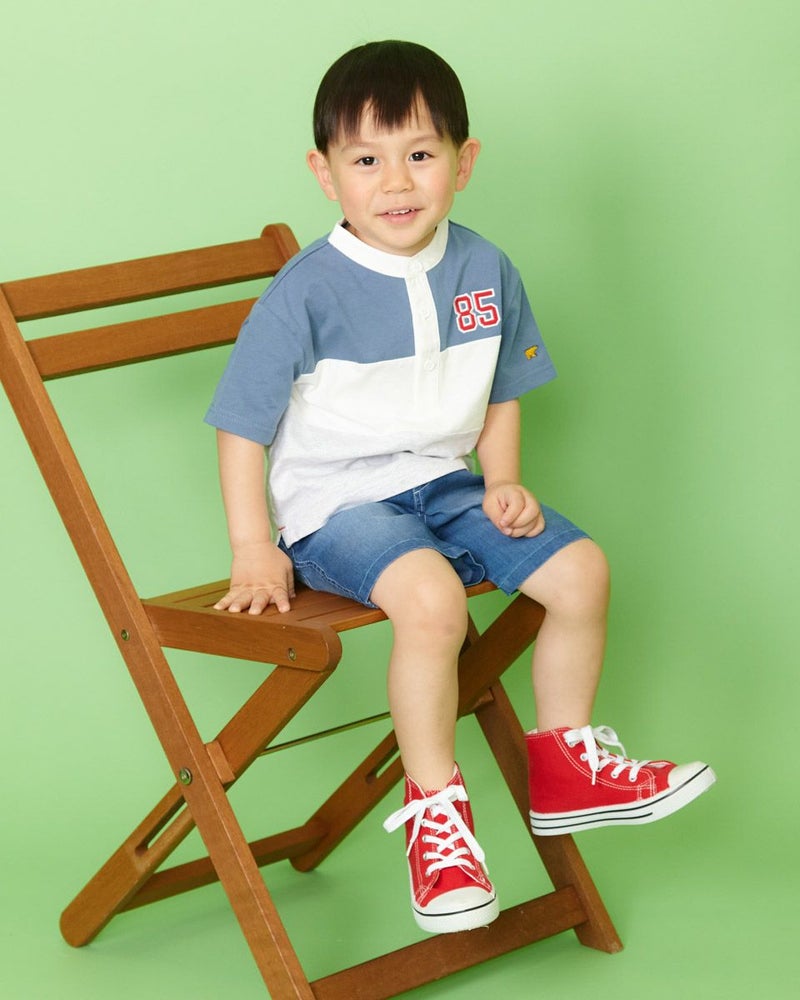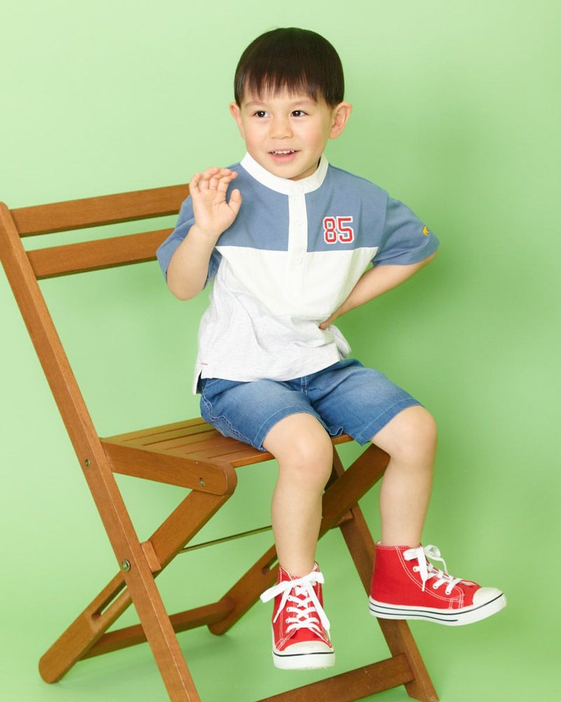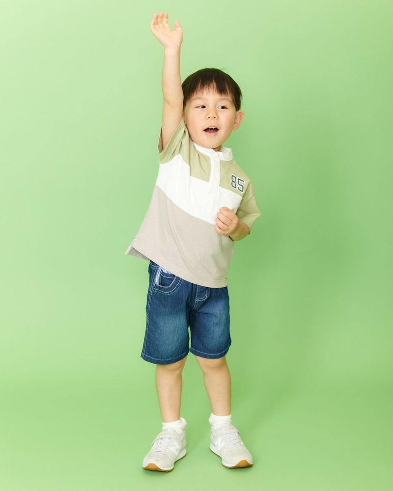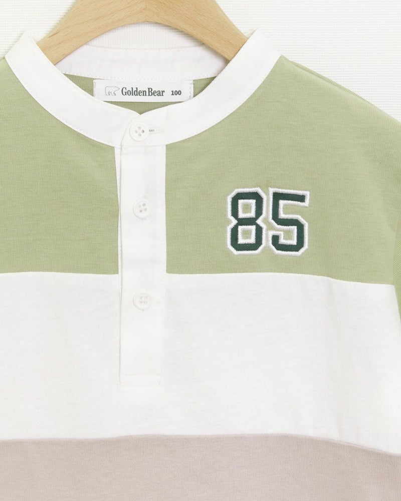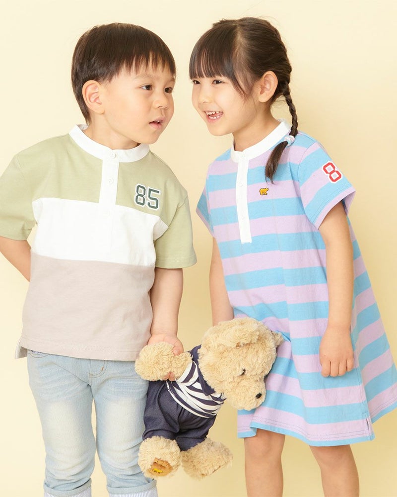 ラグビージャージ風のデザインTシャツです。ニュアンスカラーも交えた明るい配色切替がポイントです!カジュアルパンツと相性バッチリで、ガールズ品番(202J3851)とセットで兄妹コーディネートもおすすめですよ♪ モデル身長: 99 cm 着用サイズ: 100 サイズ ガールズのラガーシャツワンピースはこちら Golden Bear KIDS カットソー (KIDS)