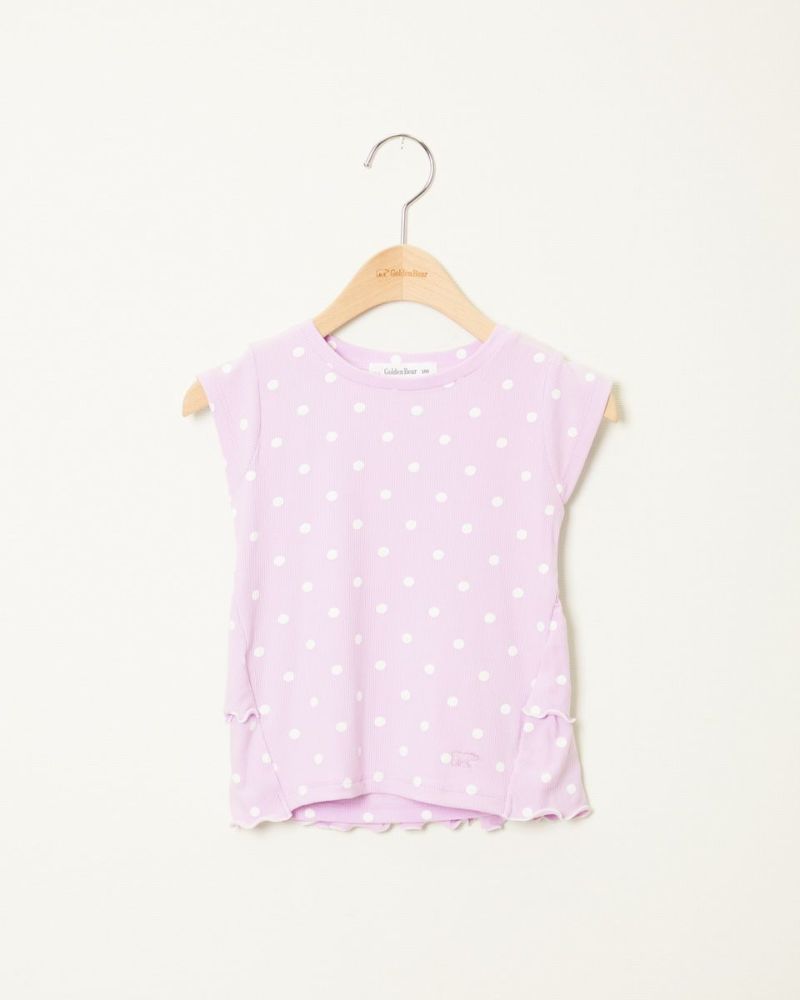 ストレッチ性があり、とても動きやすい水玉プリントのTシャツです。バックのフリル使いで愛らしさUP! モデル身長: 103 cm 着用サイズ: 100 サイズ Golden Bear Kids カットソー (Kids)