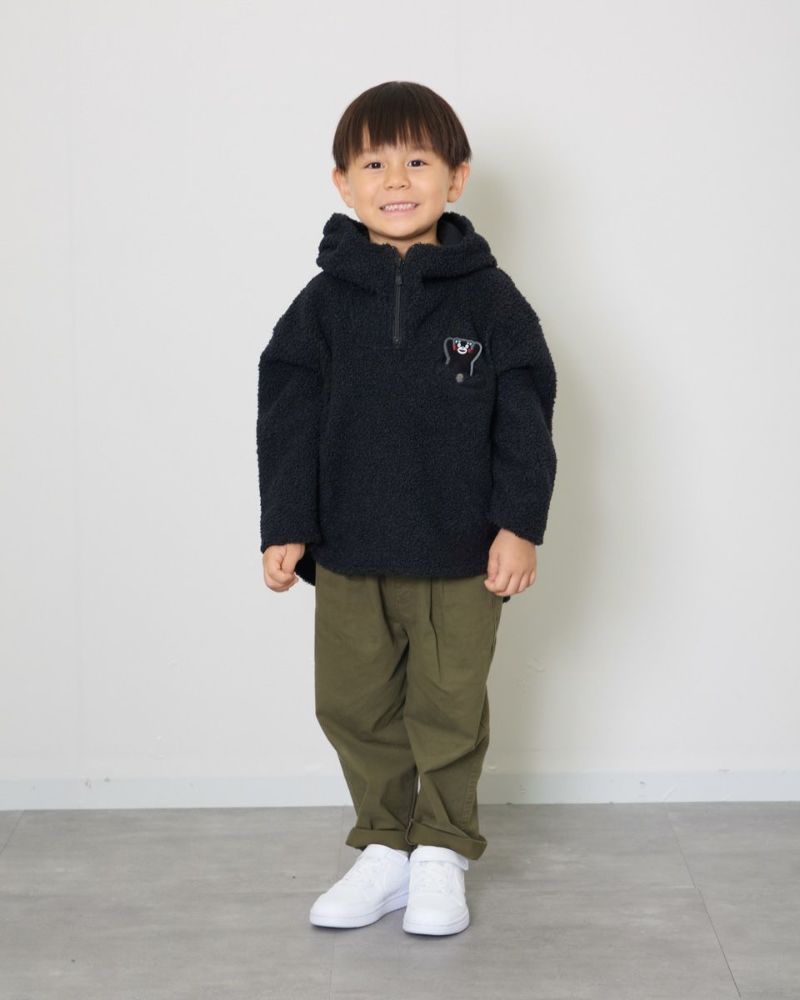 胸のポケットには取り外し可能なくまモンのワッペンが付いており、遊び心のあるアイテムです。