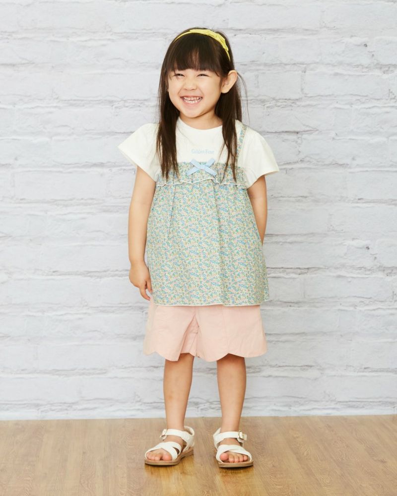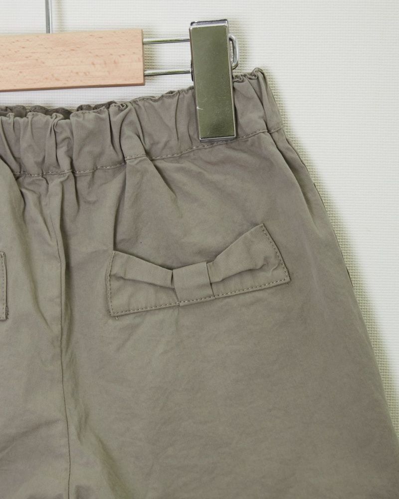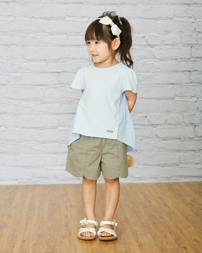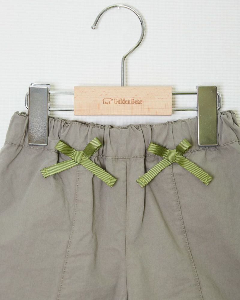 裾部分をスカラップにカットしたショートパンツです。トップスを選ばない、夏の優秀パンツです。ウエスト部分のリボンがポイント!ウエストゴム仕様で着脱もらくらく簡単です。