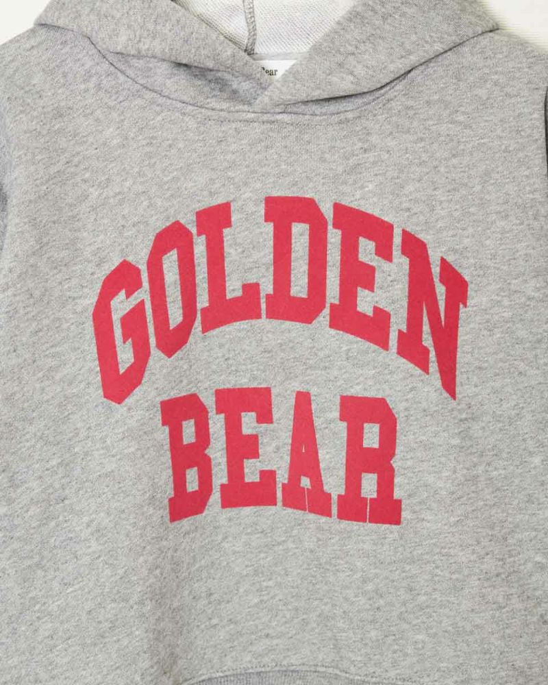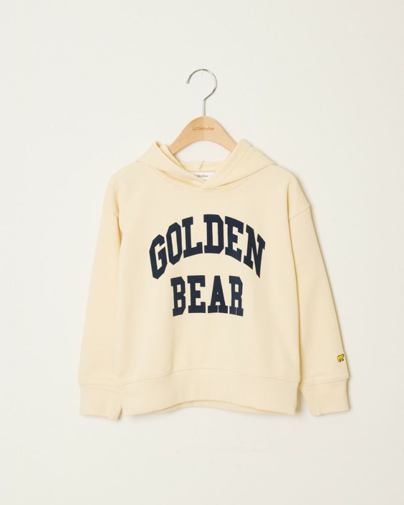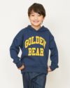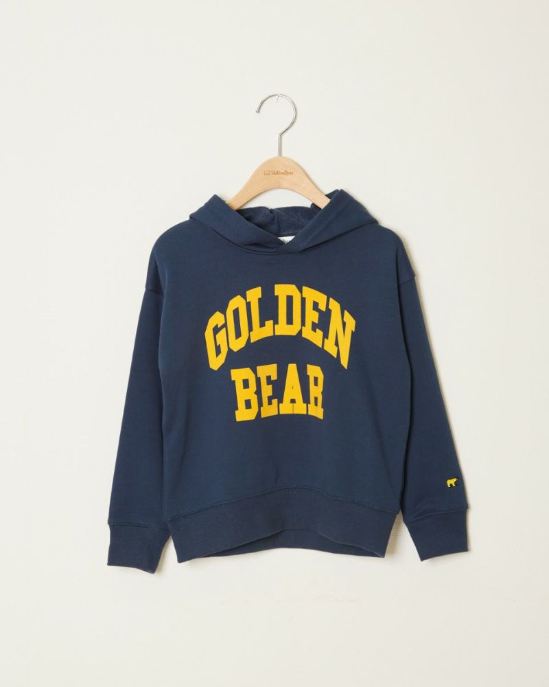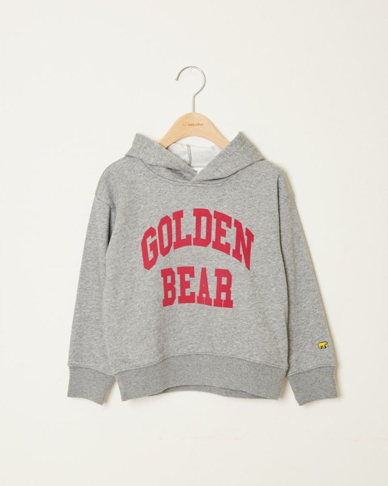 やわらかく肌触りの良い裏毛素材を使用したパーカです。GOLDEN BEARの文字をカレッジロゴ風にデザインアレンジしました。フロントのフロッキープリントにはボディカラーに合わせて映える色を採用しています。シンプルながら存在感のあるアイテムです。BOYS、GIRLS共用でお召しいただけます。