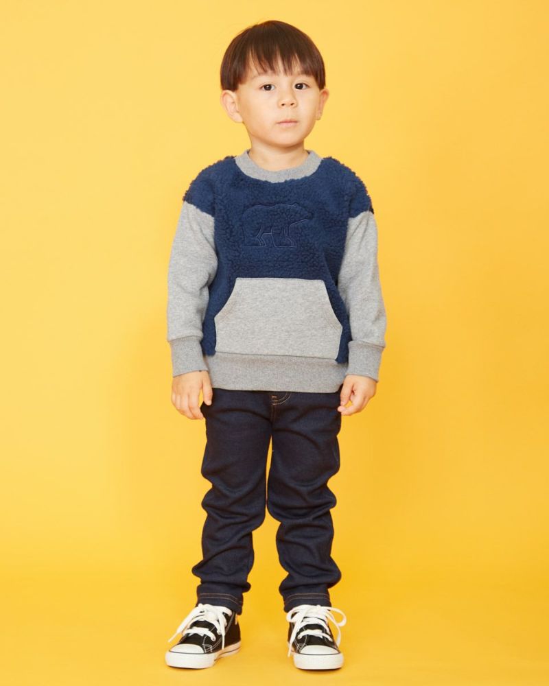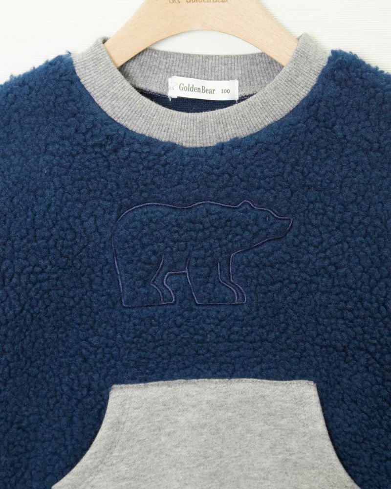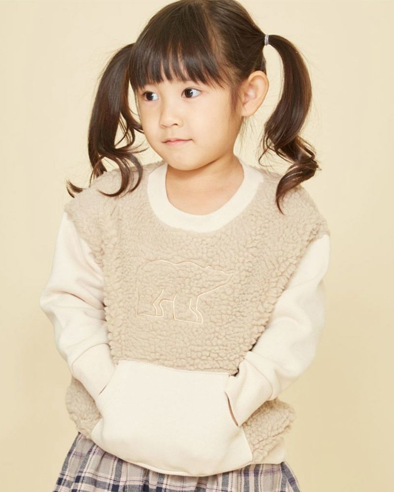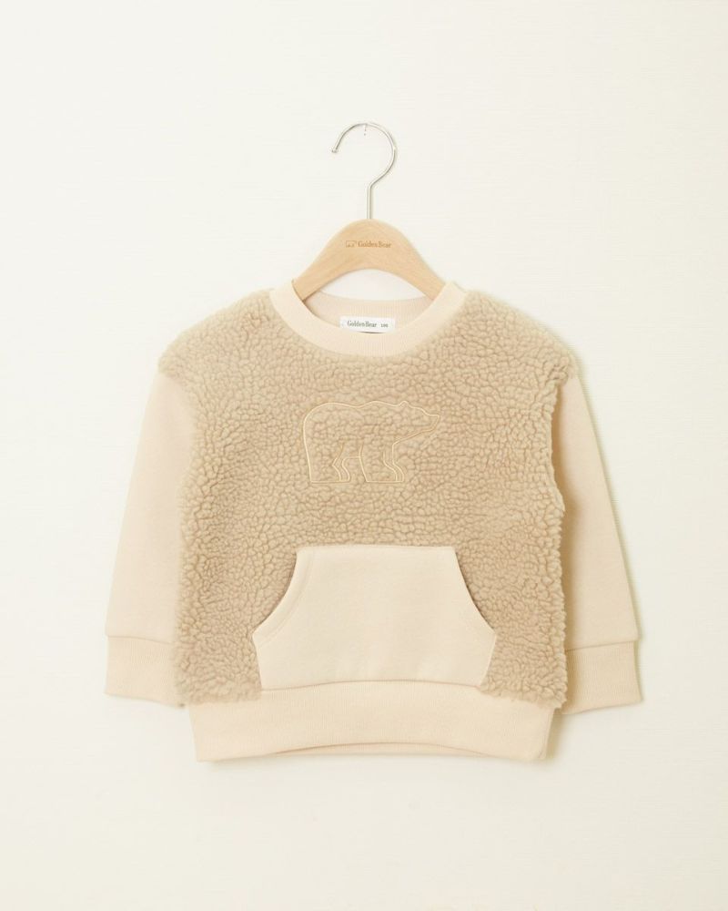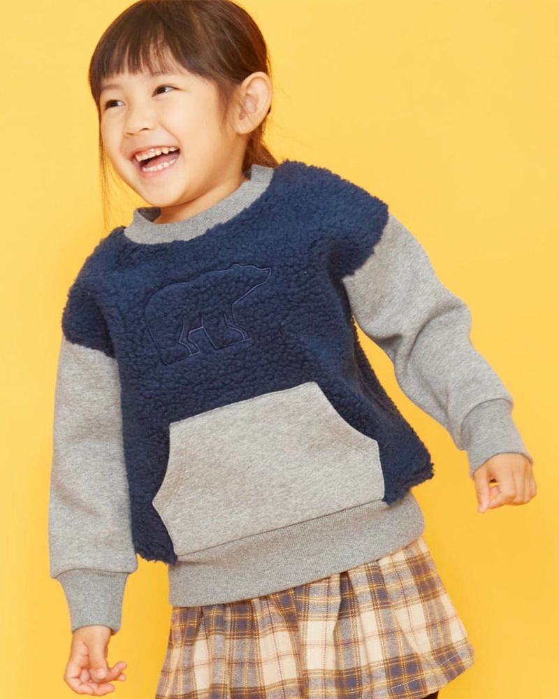 ボアと裏起毛ニットで暖かいプルオーバーです。袖とフロントポケットの配色使いが効いていて、胸元にはベアのアイコンが刺繍されて、ワンポイントになっています♪シンプルな無地ボトムとも、柄やデザイン入りのボトムとも愛称抜群です!Boys/Girls兼用でおめしいただけます。