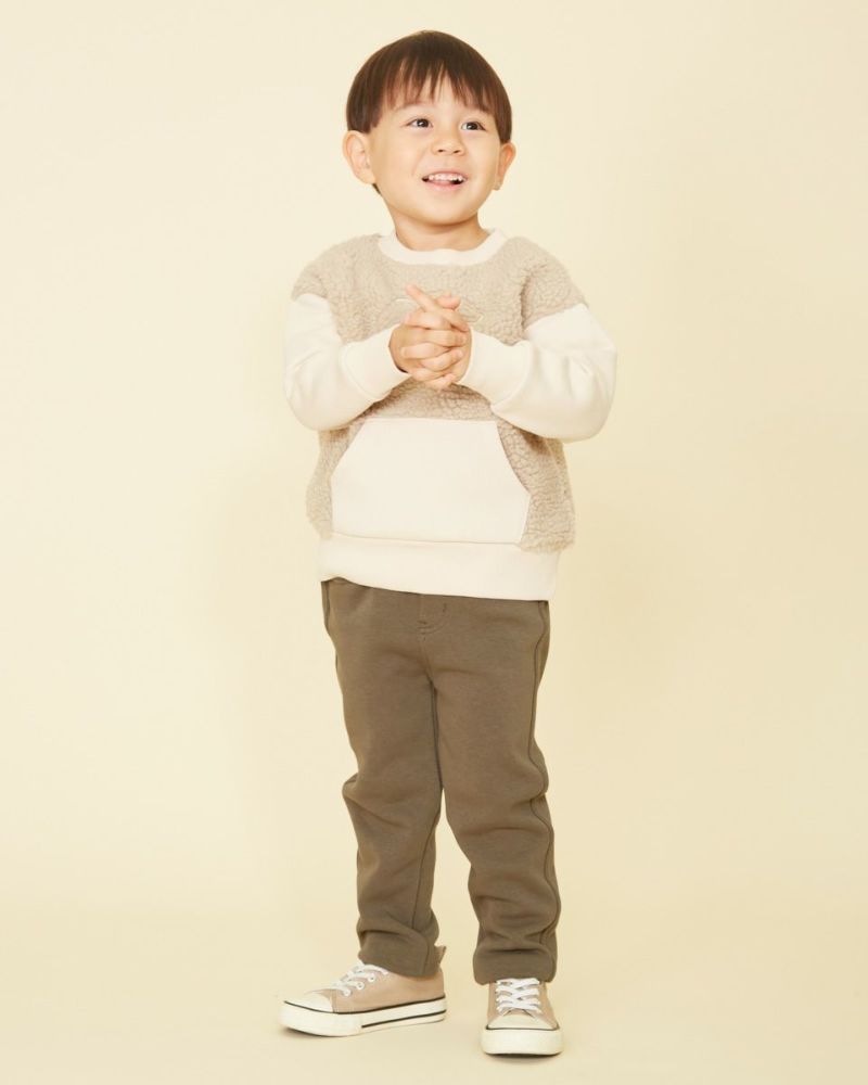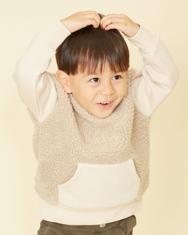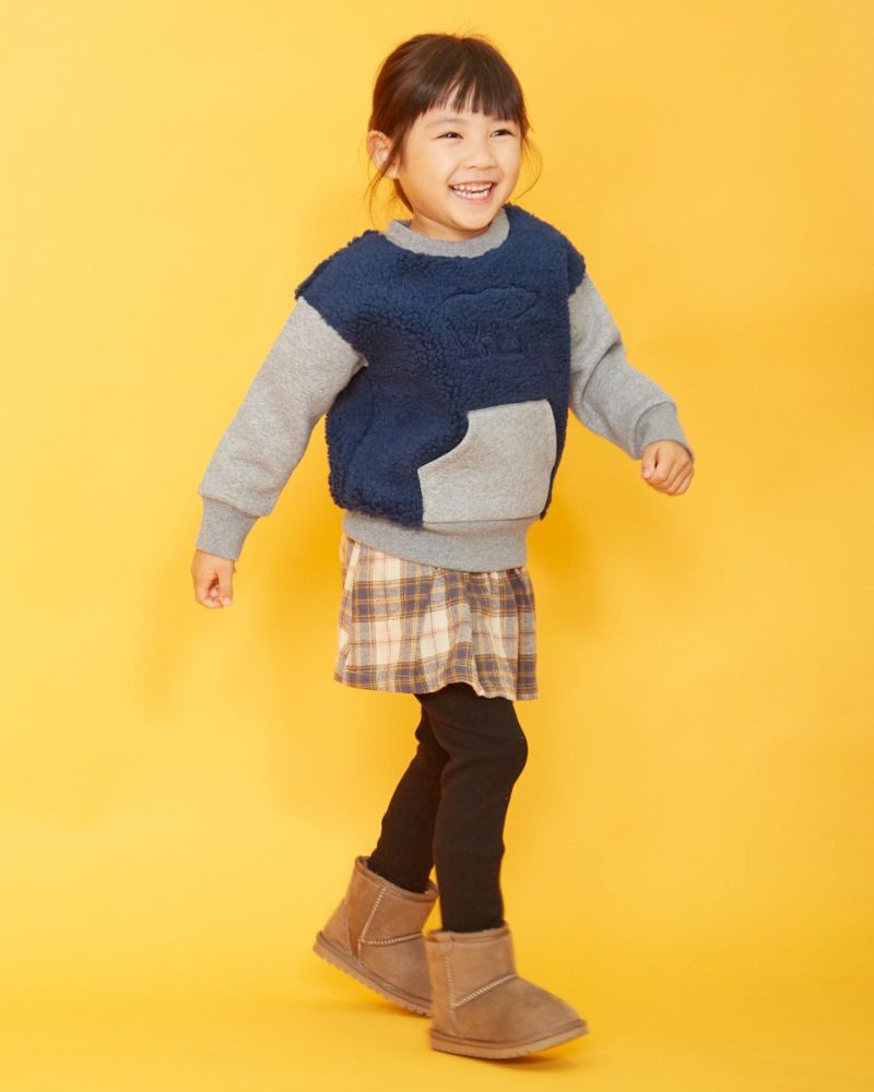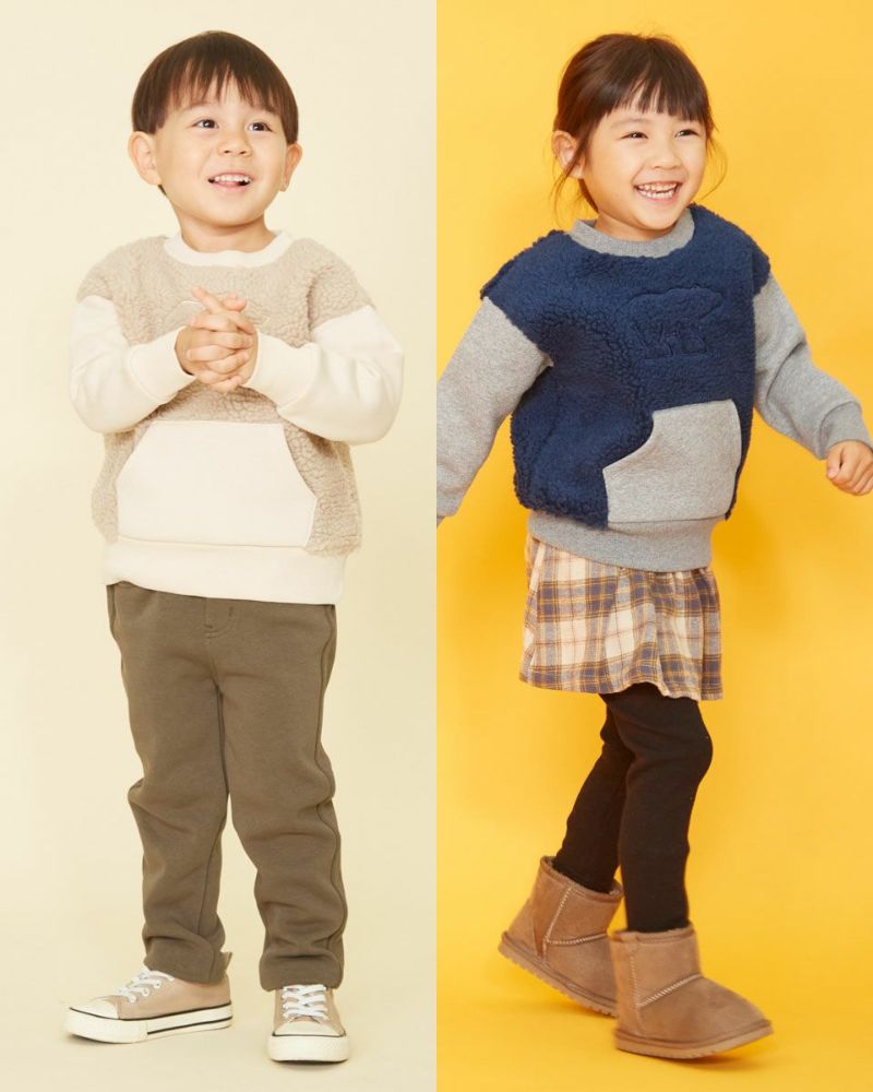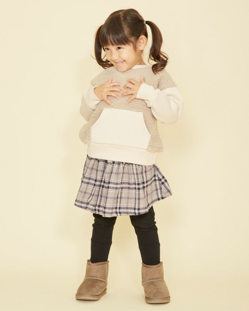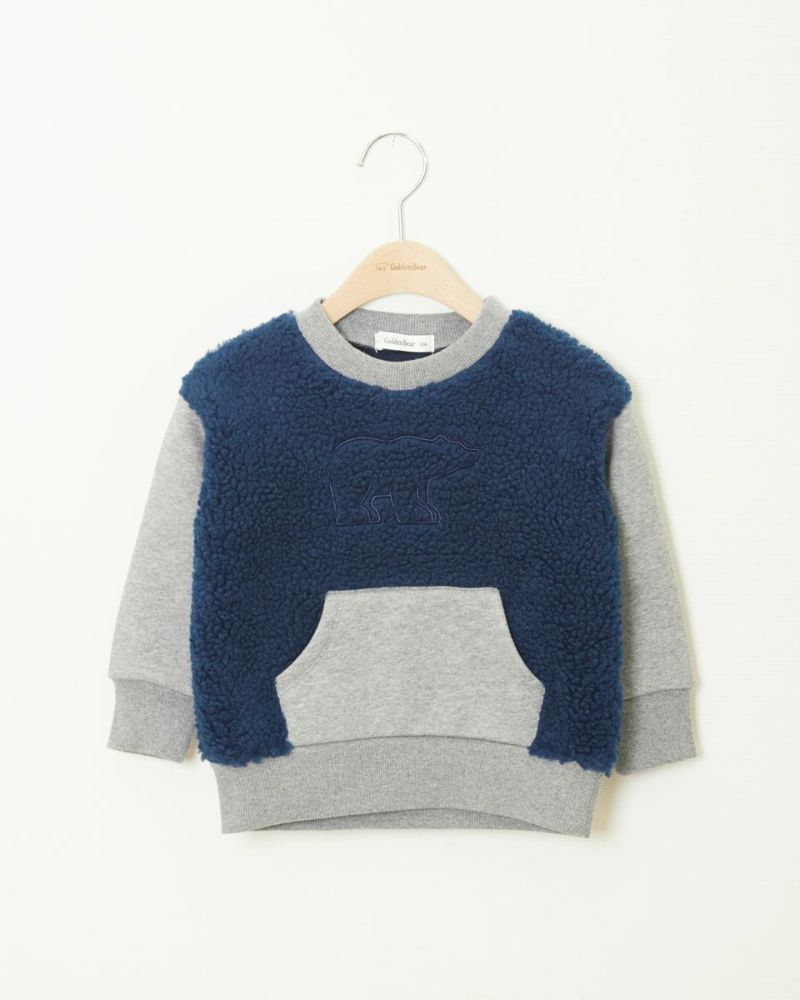 ボアと裏起毛ニットで暖かいプルオーバーです。袖とフロントポケットの配色使いが効いていて、胸元にはベアのアイコンが刺繍されて、ワンポイントになっています♪シンプルな無地ボトムとも、柄やデザイン入りのボトムとも愛称抜群です!Boys/Girls兼用でおめしいただけます。