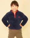 ふわふわのボアフリースを使用したプルオーバーです。 襟元はZIPアップ仕様ですぽっと簡単に着用可能。 パイピングの配色がメリハリを利かせています♪ 軽くて暖かなフリース素材はアウトドアでも大活躍です! 男の子、女の子兼用でご利用いただけます。
