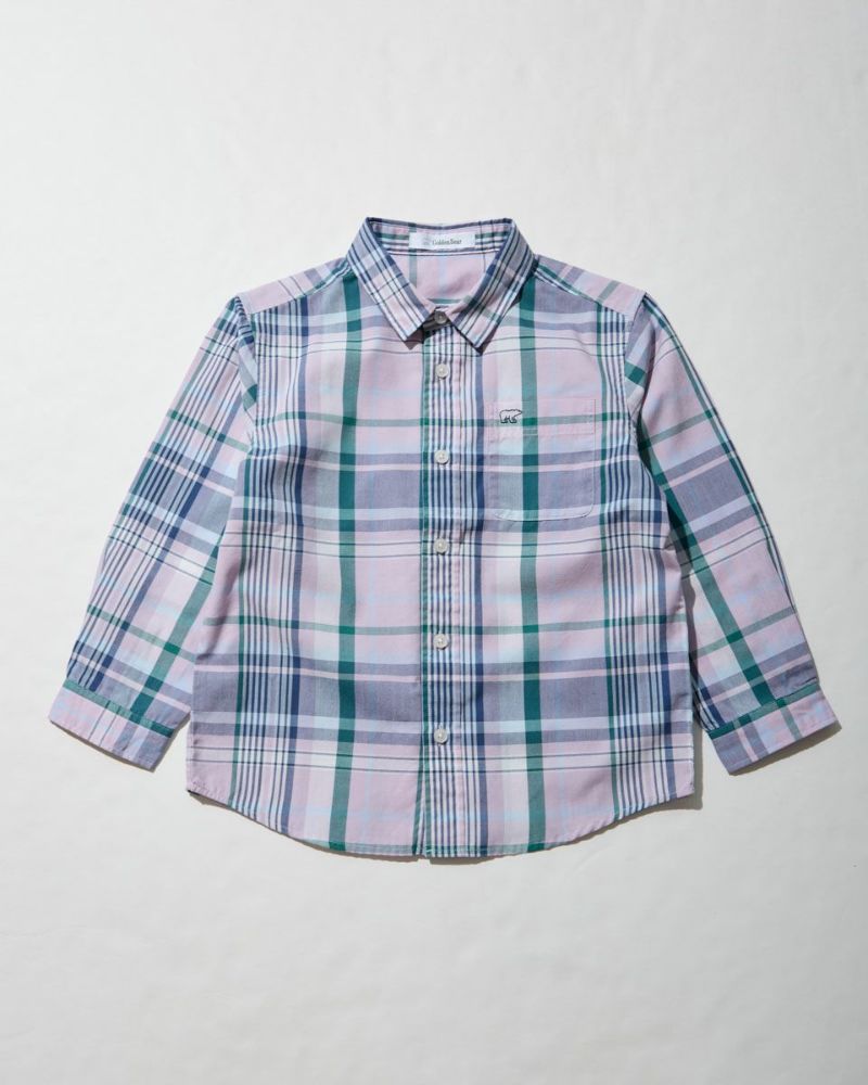 オリジナルチェック柄のシャツです。 ドライな肌触りで春先から夏にかけてサラッと着用して頂けます。 胸元のくま刺しゅうがワンポイントアクセントになっています。 飽きの来ないデザインも魅力。202R2802のワンピースも同素材を使用しているので、家族コーディネートでお楽しみいただけます。 ボーイズモデル身長:112cm 着用サイズ:120サイズ ガールズモデル身長:138cm 着用サイズ:140サイズ Golden Bear Kids ブラウス (Kids) ワンピース (Kids)はこちら レディースサイズはこちら メンズサイズはこちら 家族コーディネートアイテムはこちら