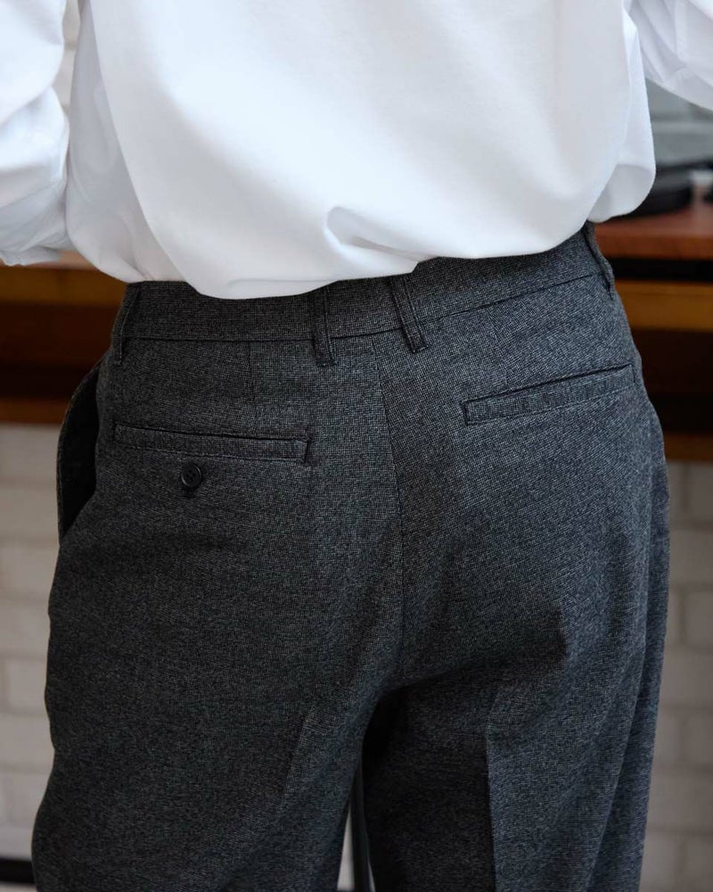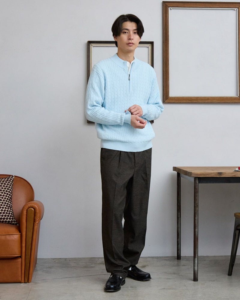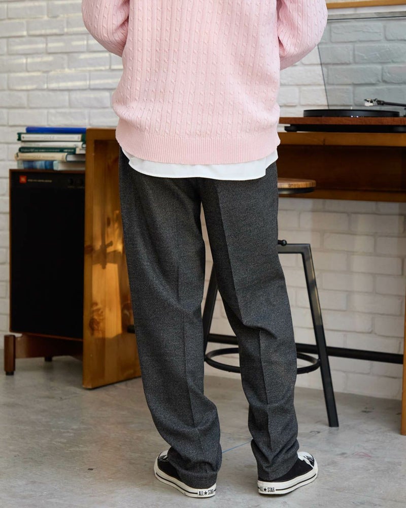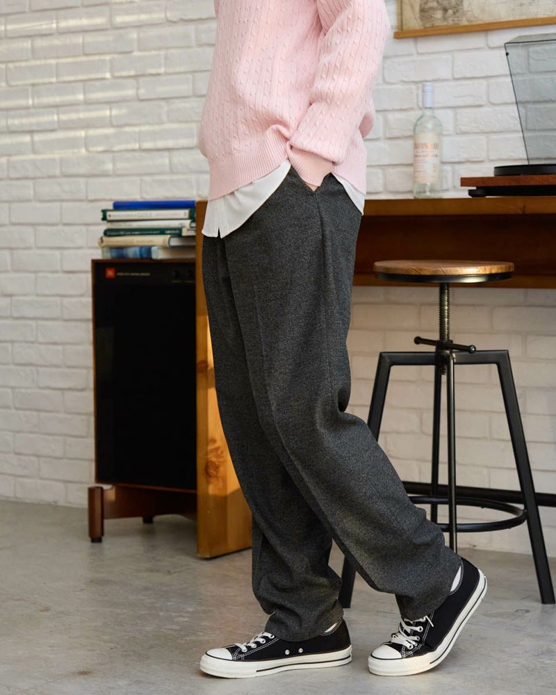 暖かみのある裏起毛のイージースラックスです。 立体的で上質感のあるバーズアイ組織素材を使用しています。シルエットはワンタックのストレート。様々なスタイルに合わせやすいボトムスです。 モデル身長: 180 cm 着用サイズ: L サイズ 同デザイン通常サイズはこちら Golden Bear KING SIZE(MEN 大きいサイズ) ボトムス (MEN) 【着用アイテム】314RC230 オックスシャツ 314RF631 ハーフZIPケーブルニット 314Q3095 ニットタイ