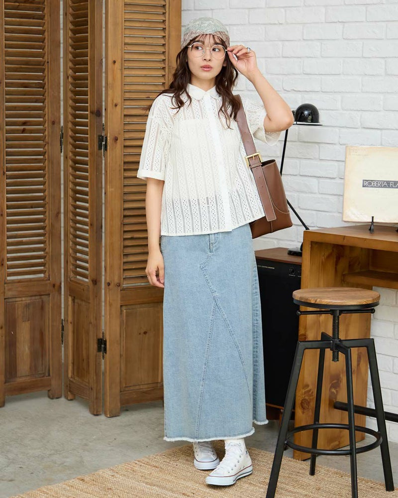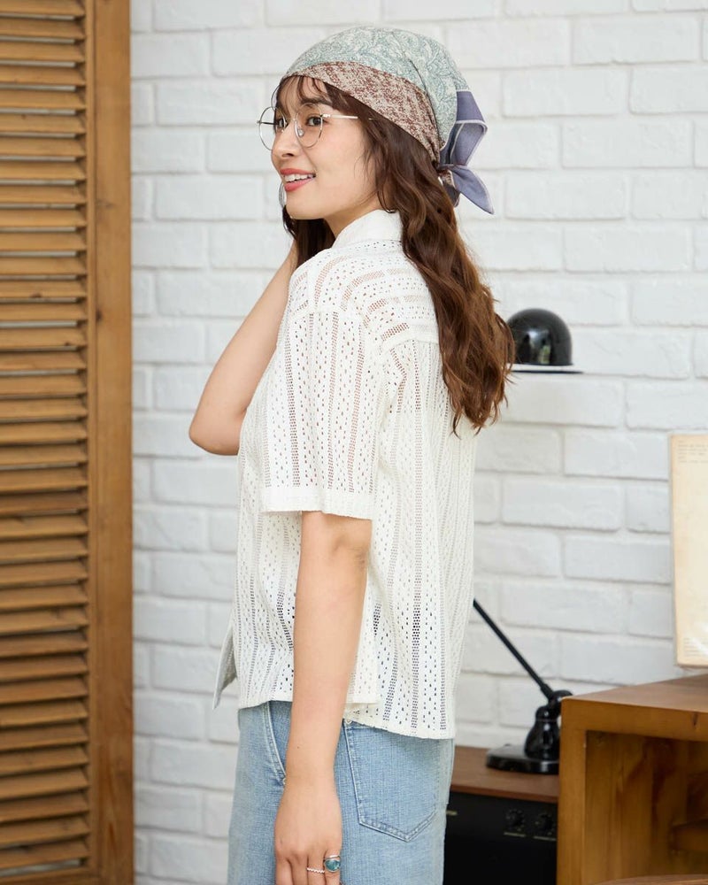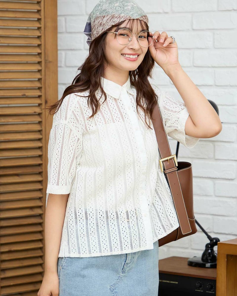 デザイントレンドのレースシャツです。レース柄自体は甘すぎないので大人な印象でカジュアルに着こなせます。着丈をコンパクトにして軽やかにバランスよく仕上げています。 モデル身長: 168 cm 着用サイズ: M サイズ Golden Bear QUEEN SIZE(WOMEN 大きいサイズ ) ブラウス (WOMEN) 同デザイン通常サイズはこちら