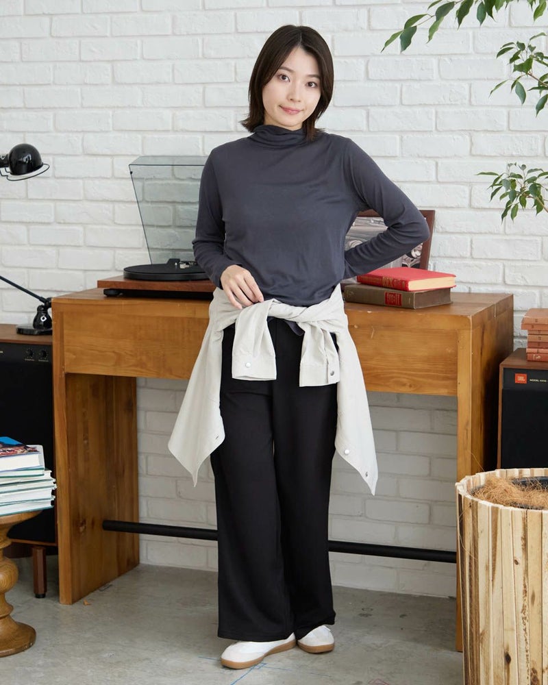 ドライな肌ざわりが心地よいタートルネックカットソー。季節の変わり目の重ね着に欠かせない一枚です。インナーとしてはもちろん、レイヤードの見せ方次第で主役にもなる、汎用性の高いアイテムです。 モデル身長: 162 cm 着用サイズ: M サイズ Golden Bear QUEEN SIZE(WOMEN 大きいサイズ ) カットソー (WOMEN) 同デザイン通常サイズはこちら