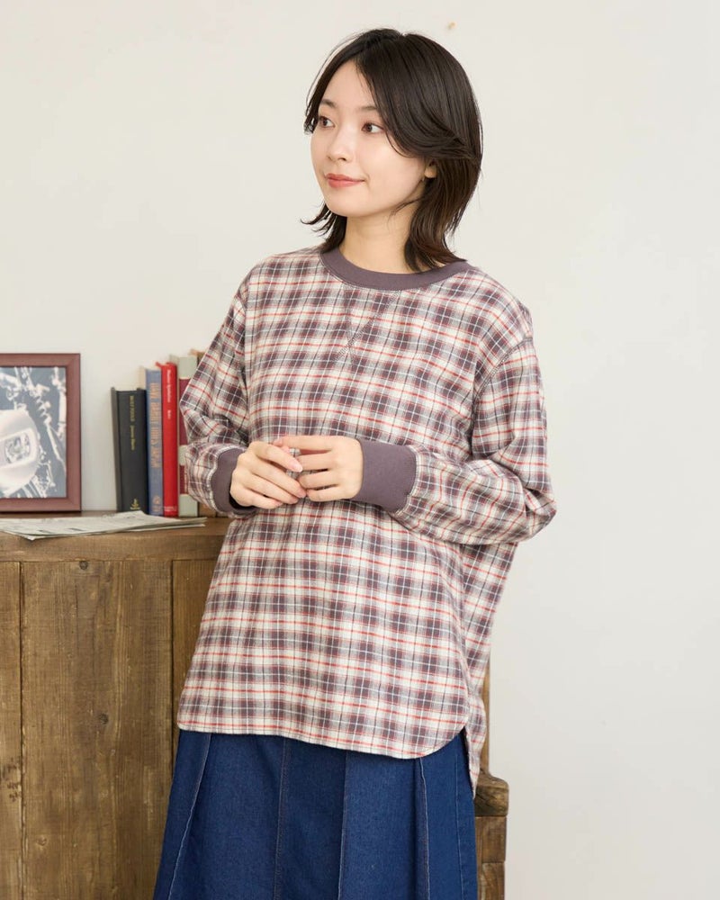 ウール混で暖かみのある長袖Tシャツのようなブラウスです。カットソーの長袖Tシャツのように、襟と袖口にリブを使用しました。裾をシャツテールにすることでインナーとしても着合せやすいデザインです。 モデル身長: 162 cm 着用サイズ: M サイズ Golden Bear QUEEN SIZE(WOMEN 大きいサイズ ) ブラウス (WOMEN) 同デザイン通常サイズはこちら