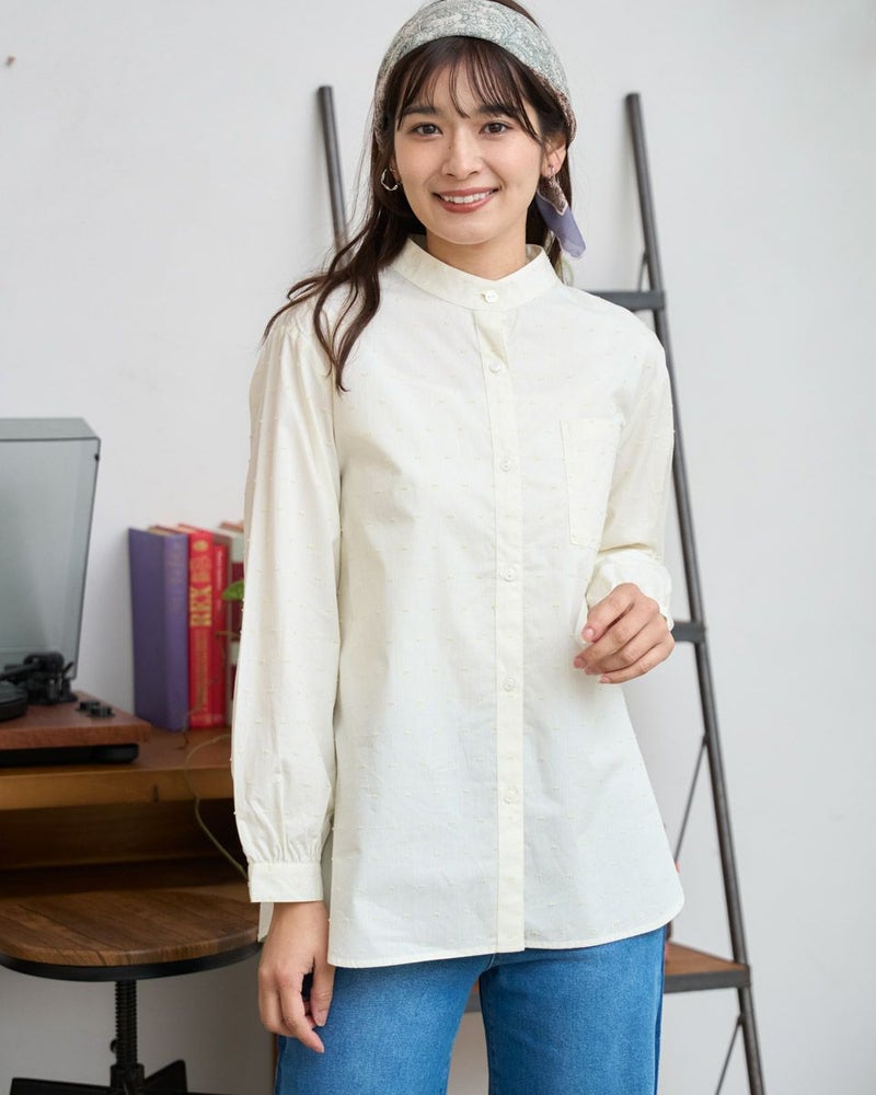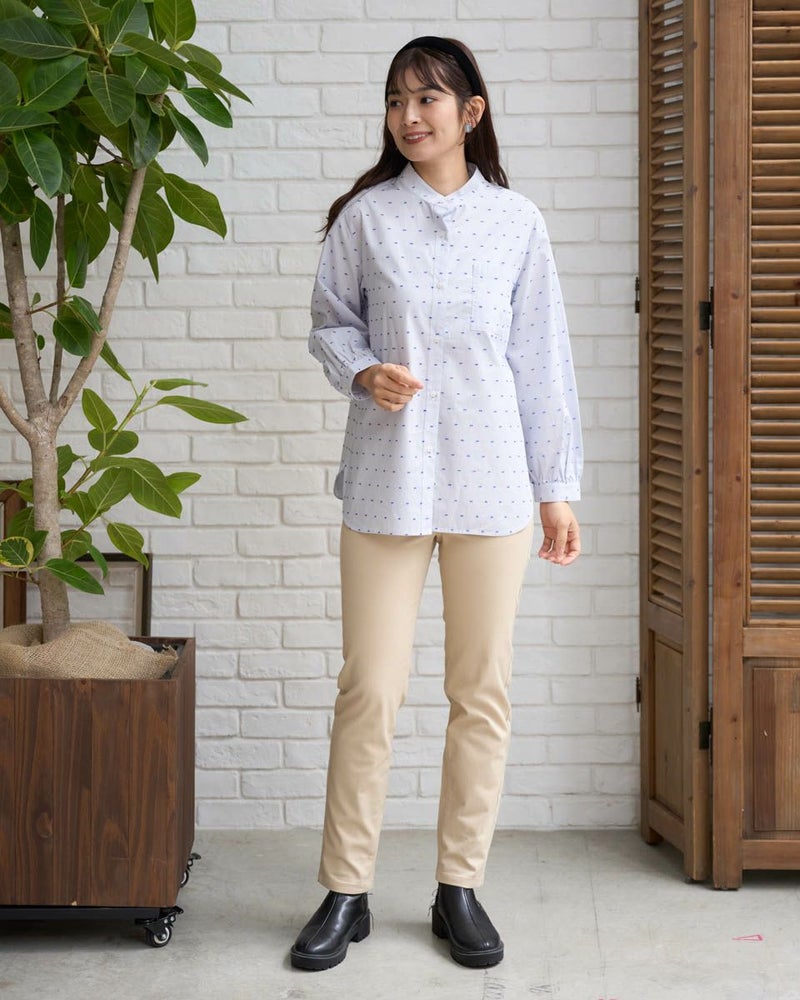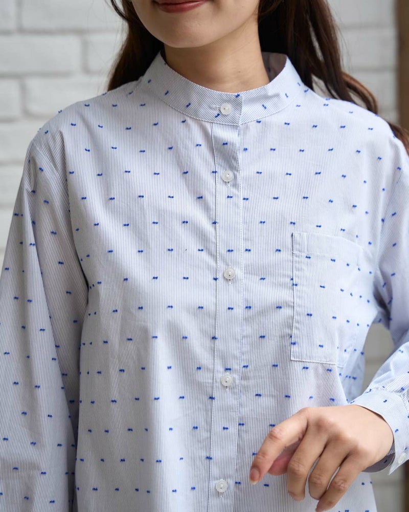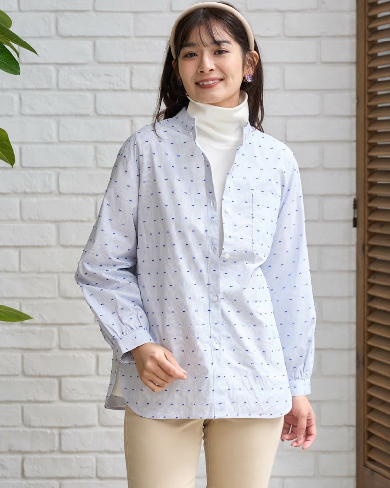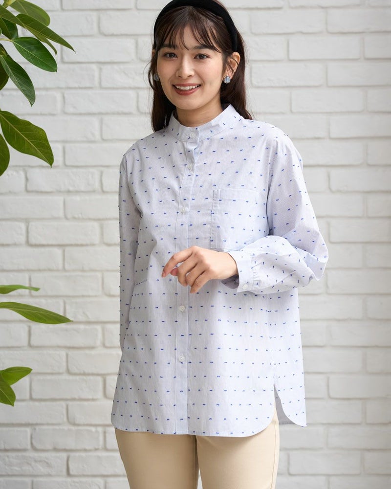 オーガニックコットン100%の風合いの柔らかいストライプドビー素材を使用したシャツチュニックです。スタンドカラーで袖口はギャザーで膨らみをもたせています。 モデル身長: 168 cm 着用サイズ: M サイズ Golden Bear QUEEN SIZE(WOMEN 大きいサイズ ) ブラウス (WOMEN) 同デザイン通常サイズはこちら