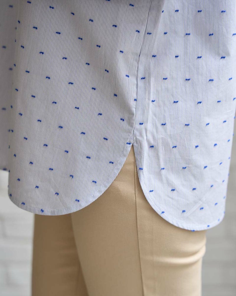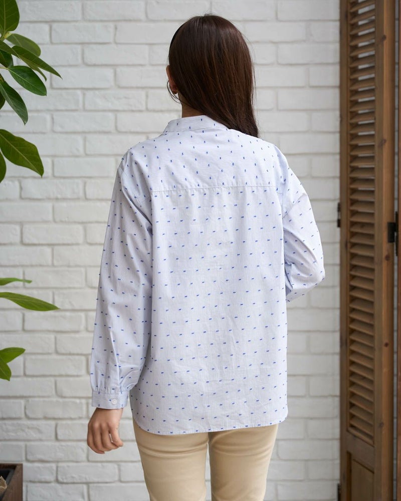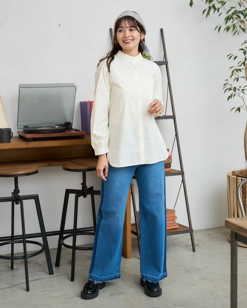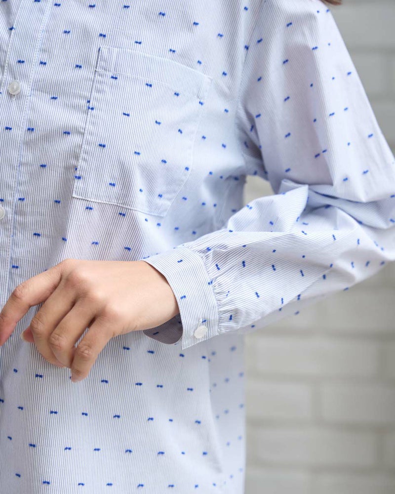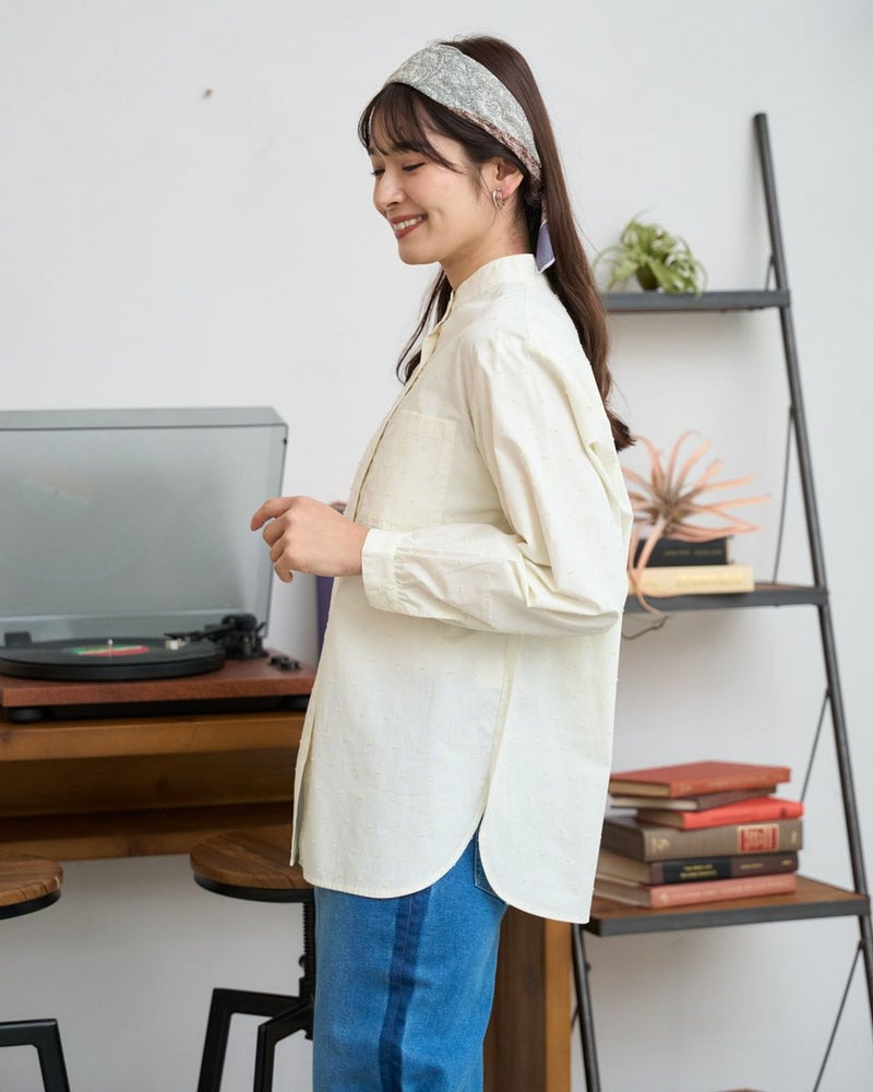 オーガニックコットン100%の風合いの柔らかいストライプドビー素材を使用したシャツチュニックです。スタンドカラーで袖口はギャザーで膨らみをもたせています。 モデル身長: 168 cm 着用サイズ: M サイズ Golden Bear QUEEN SIZE(WOMEN 大きいサイズ ) ブラウス (WOMEN) 同デザイン通常サイズはこちら