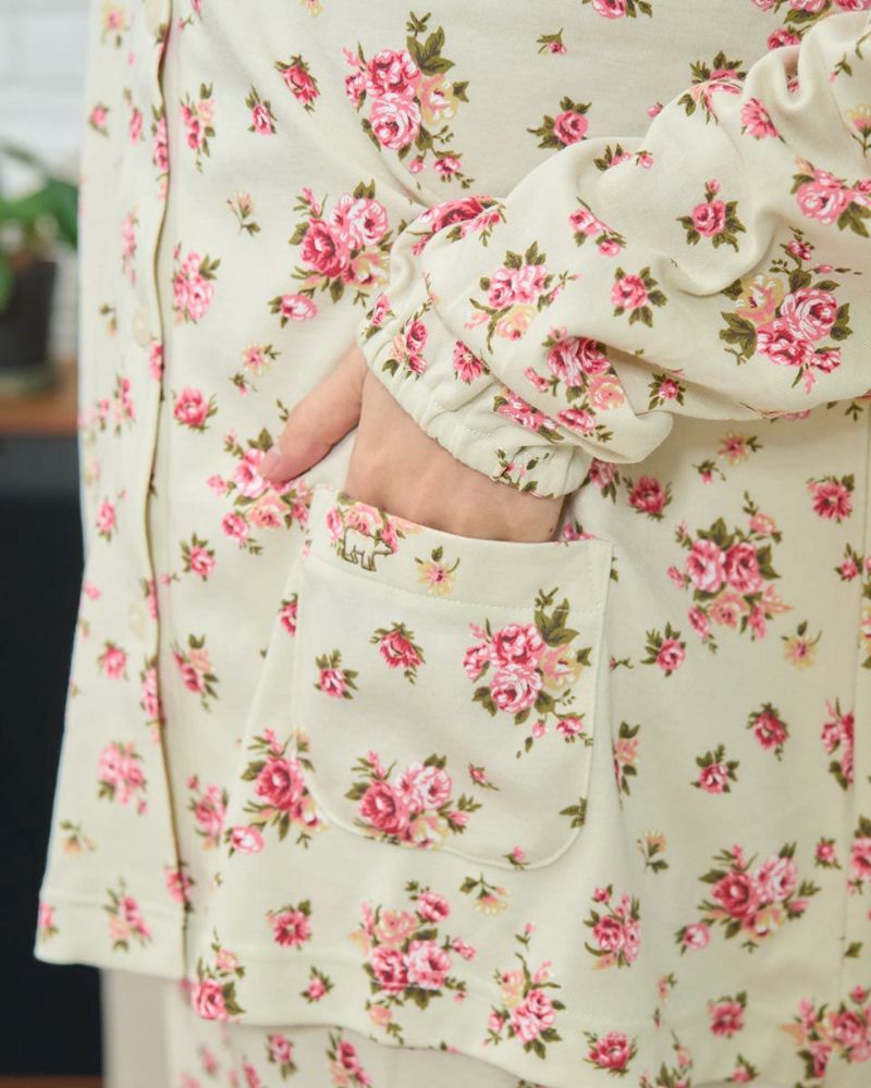 長袖・長ズボンのテーラードカットソーパジャマです。柔らかい肌触りで伸縮性のある生地を使用した小花柄。ゆったりとしたサイズ感で、着心地の良さがおすすめです。