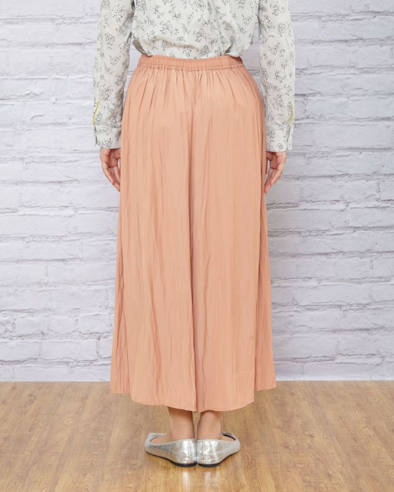 生地にワッシャー加工をかけたナチュラルなプリーツのガウチョパンツです。トイレに行く時など表地の裾が床につかない様に、裏地の裾にゴムを入れて表地を巻き込む事が出来る工夫をしています。 モデル身長:166cm 着用サイズ:Mサイズ スタッフ身長:155-157cm 着用サイズ:Mサイズ アイテムを使用したスタッフコーディネートはこちら Golden Bear Ladies' ボトムス (Ladies')