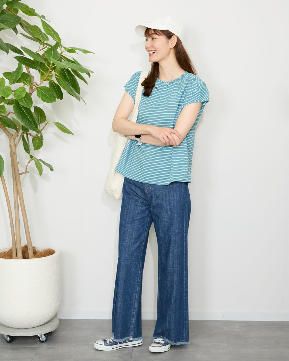 落ち着いたボーダーの配色が派手すぎずちょうどいいバランスのブラウスです。表情豊かな凹凸のある表面感が魅力です。少し立体的なシルエットで体のラインを拾わず着用できます。スタイリング次第でオンオフ問わず活躍してくれるアイテムです。 モデル身長: 171 cm 着用サイズ: M サイズ Golden Bear WOMEN ブラウス (WOMEN) 【着用アイテム】467QA601 カーディガン 467QA711 セミワイドパンツ 468QB751 ベイカー風イージーパンツ