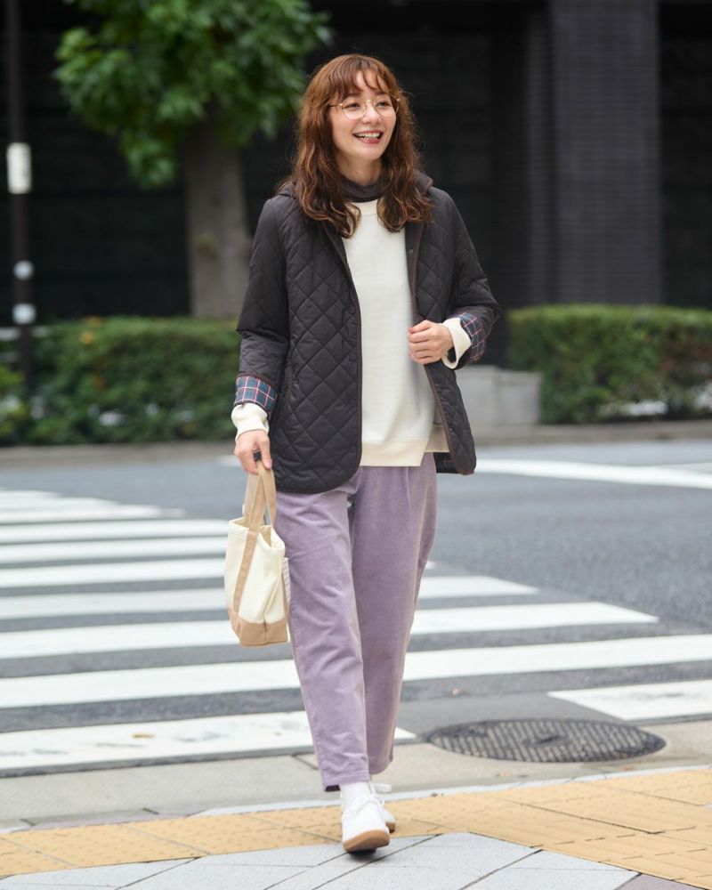 身長154センチで、ちょうど良いサイズです。 ゆったりしているので、屋外で長く過ごす日は下に防寒用タイツを履きます。
