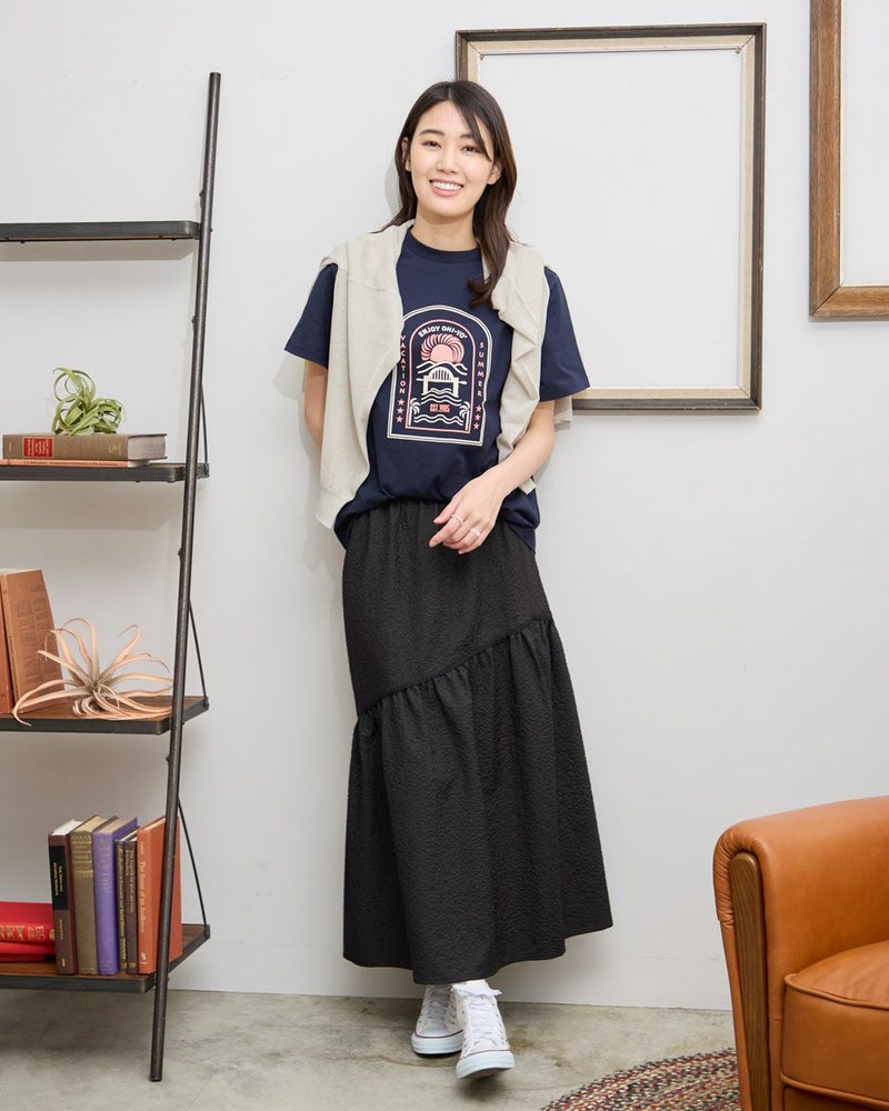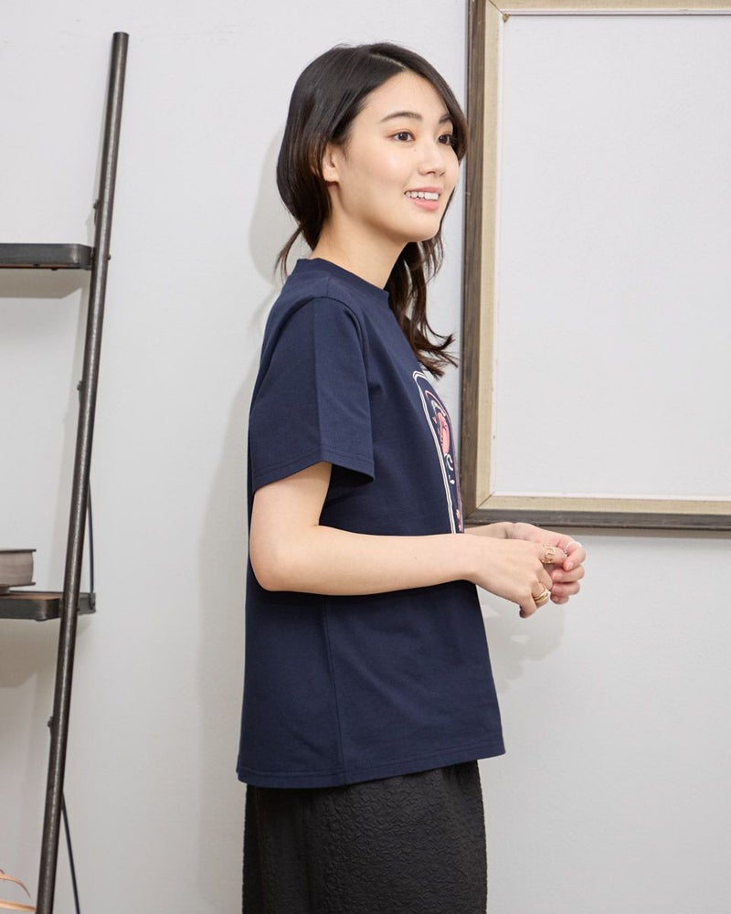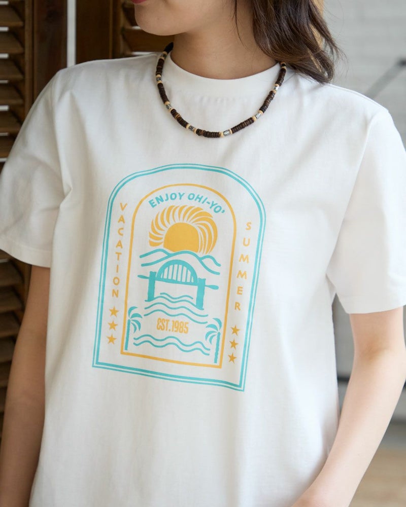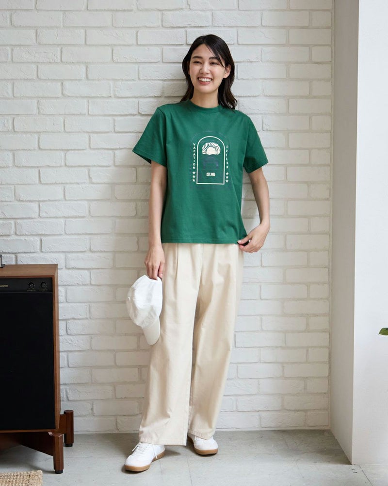 サーフモチーフのオリジナルプリントがポイントのTシャツです。 カラーは落ち着いたグリーンとネイビー、インナーにも1枚着にも汎用性のあるアイボリーの3色展開です。オーガニックコットンを使用してます。 モデル身長: 166 cm 着用サイズ: M サイズ Golden Bear WOMEN カットソー (WOMEN) 同デザイン大きい(3L,4Lサイズ)はこちら 【着用アイテム】467R4601 ニットカーディガン 467R3711 ガウチョパンツ 467R4702 テーパードパンツ 468R3751 スカート 468R3760 ストレートパンツ