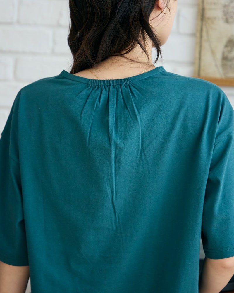 切り替え部分にカラー配色のスモッキングを施したデザイントップスです。天竺と布帛の2種の素材を使用しているのもシルエットに遊びが出るのでポイントになっています。オーガニックコットンを使用しています。 モデル身長: 166 cm 着用サイズ: M サイズ Golden Bear WOMEN カットソー (WOMEN) 同デザイン大きい(3L,4Lサイズ)はこちら 【着用アイテム】468R4750 ストレートパンツ