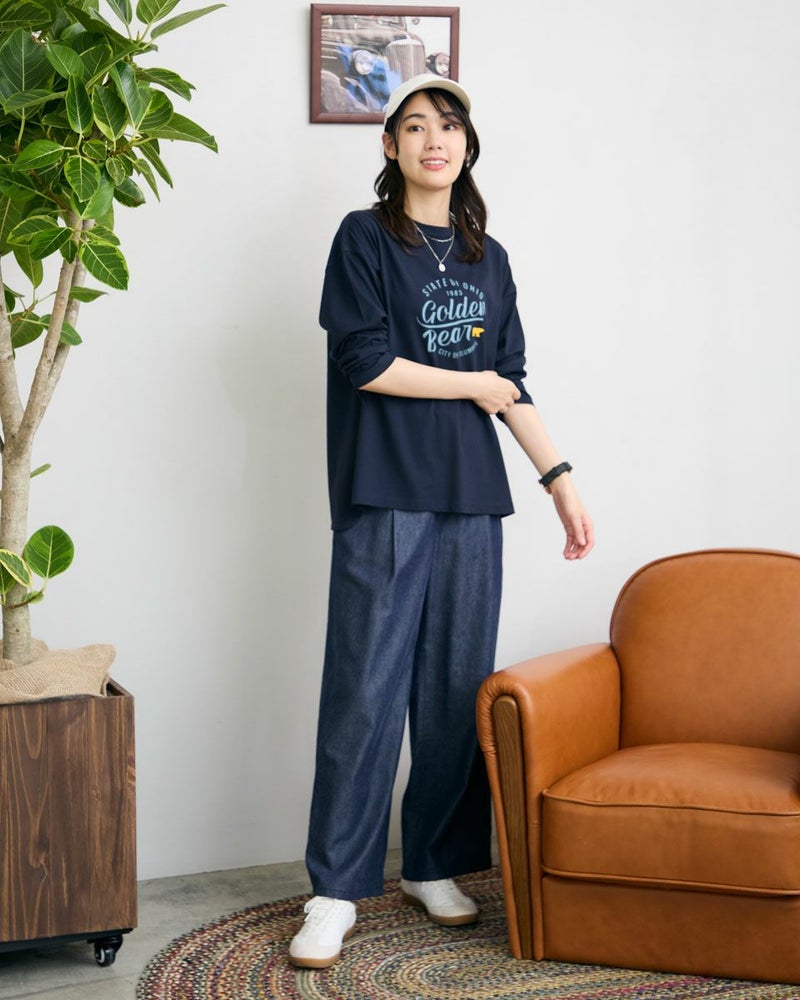 オーガニックコットン100%の天竺を使用したプリントTシャツです。オリジナルのGOLDENBEARプリントロゴを使用したデザインです。後ろ裾を少しラウンドさせて、ニットやプルオーバーとの重ね着を楽しめるようなシルエットにしました。 モデル身長: 166 cm 着用サイズ: M サイズ Golden Bear WOMEN カットソー (WOMEN) メンズサイズはこちら 家族コーディネートアイテムはこちら 【着用アイテム】467R4702 テーパードパンツ 468R3760 ストレートパンツ